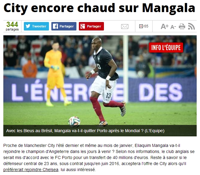 Αξίζει να σημειωθεί πως η Τσέλσι που βολιδοσκοπεί επίσης τον Γάλλο ποδοσφαιριστή φέρεται να ετοιμάζει επίσης πρόταση στην Πόρτο για τον Μανγκαλά και αναμένεται οι δύο ομάδες να «συγκρουστούν» σώμα με σώμα για τον στόπερ των Πορτογάλων.