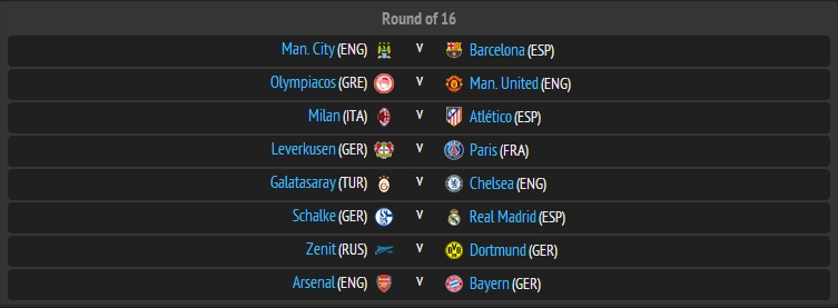 Δείτε αναλυτικά όλα τα ζευγάρια της φάσης των “16” του Champions League: