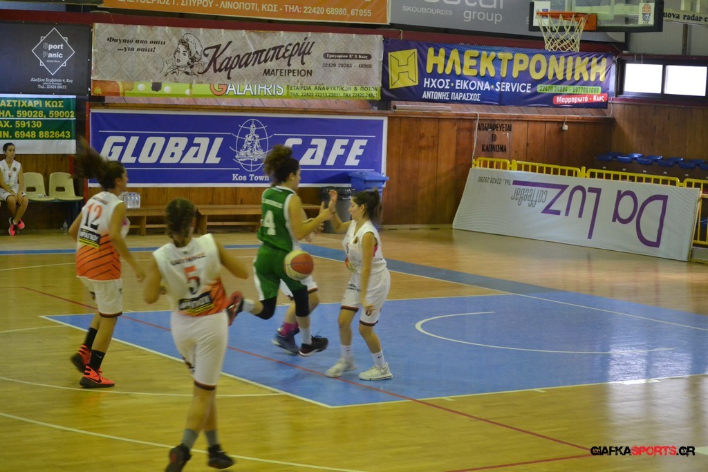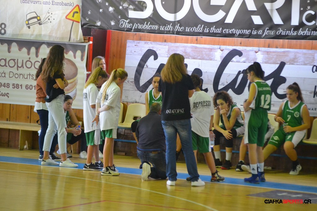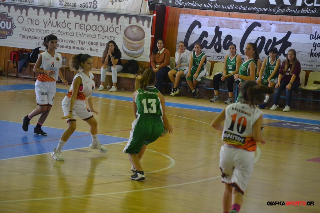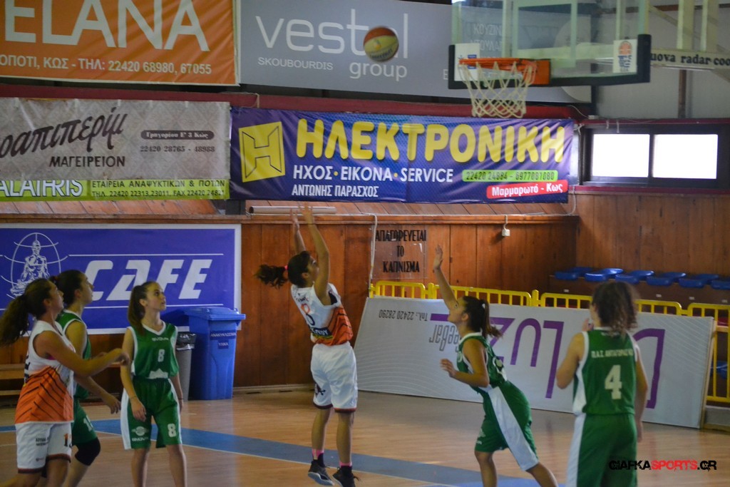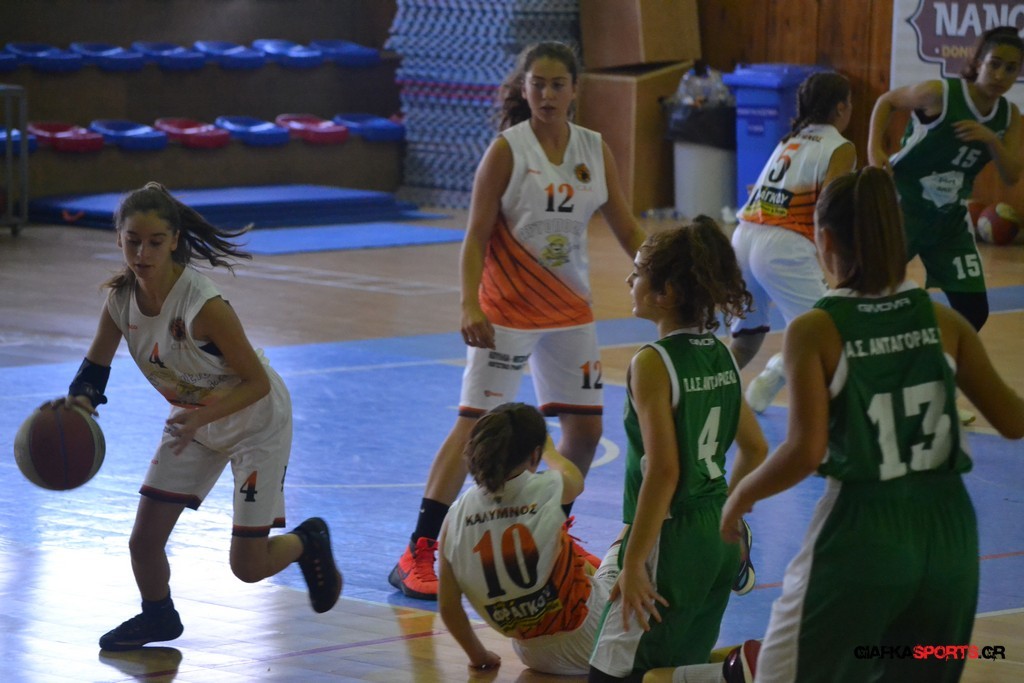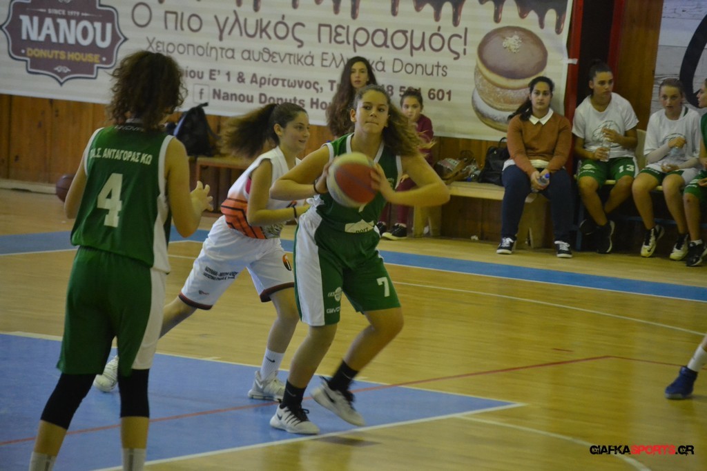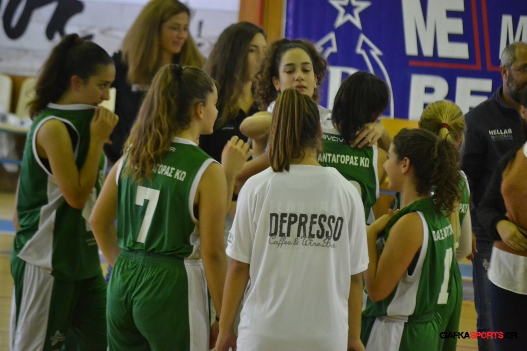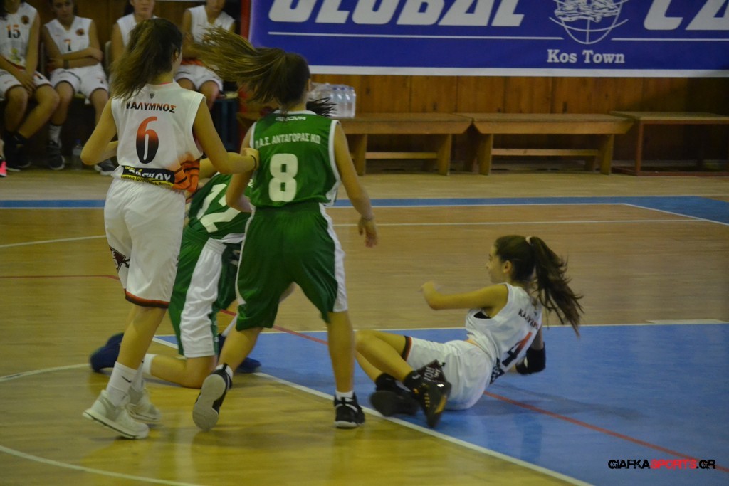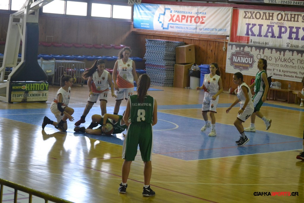 Έχοντας σε καταπληκτική μέρα τις Κουζούκα και Χατζηνικολάου που πέτυχαν συνολικά 45 πόντους ο Ανταγόρας επικράτησε με 54-40 της Ακαδημίας Καλύμνου πετυχαίνοντας έτσι την 2η του νίκη στο φετινή πρωτάθλημα. Οι “πράσινες” κατάφεραν να πάρουν προβάδισμα απ’ το πρώτο δεκάλεπτο και να “χτίσουν” στην συνέχεια πάνω σε αυτό και έφτασαν στο ροζ φύλλο αγώνος. Για την ομάδα του κ. Καλαϊτζίδη ξεχώρισαν οι Κουφάκη και Μεϊμάρη.