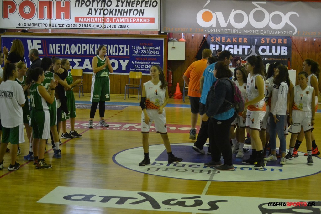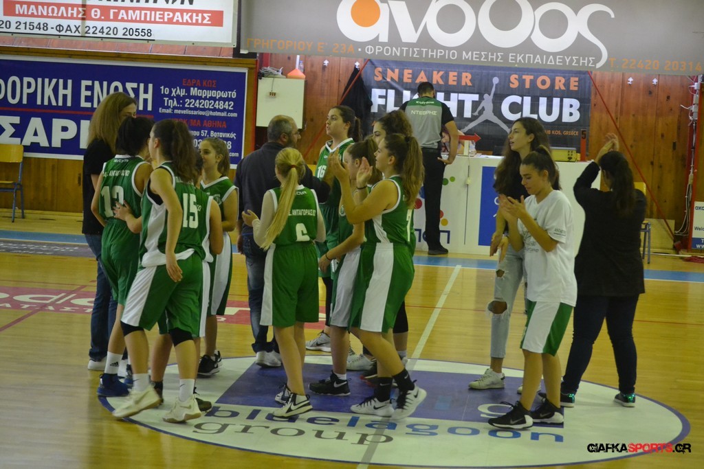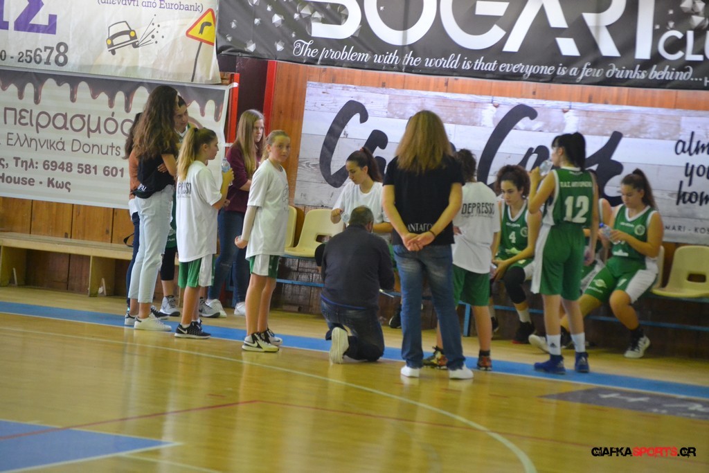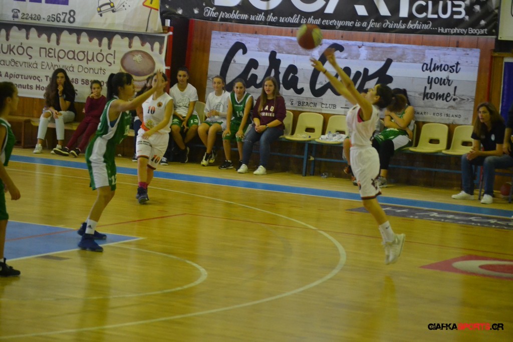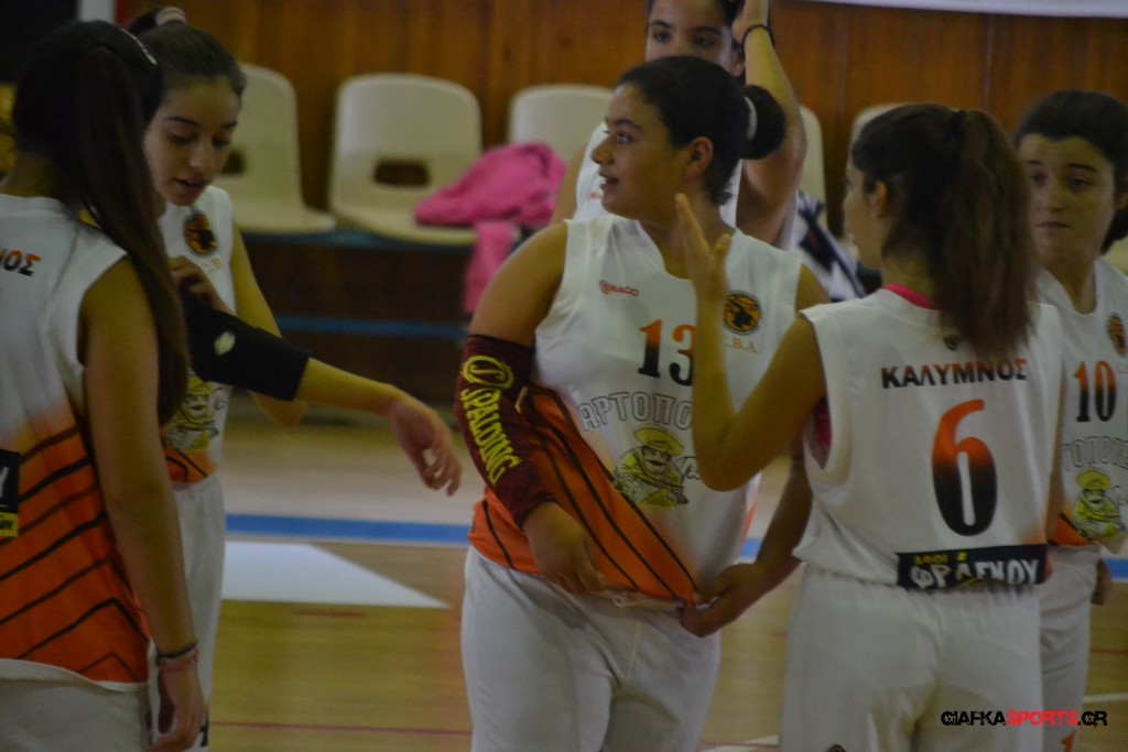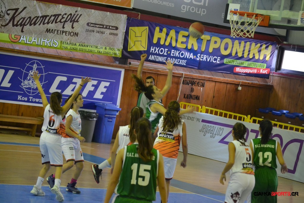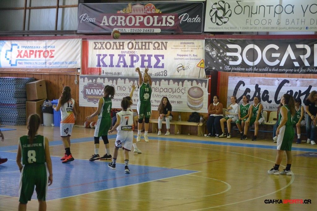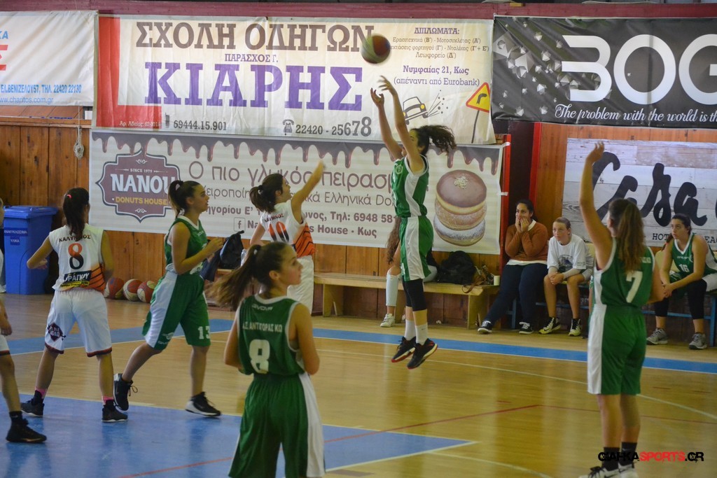 Έχοντας σε καταπληκτική μέρα τις Κουζούκα και Χατζηνικολάου που πέτυχαν συνολικά 45 πόντους ο Ανταγόρας επικράτησε με 54-40 της Ακαδημίας Καλύμνου πετυχαίνοντας έτσι την 2η του νίκη στο φετινή πρωτάθλημα. Οι “πράσινες” κατάφεραν να πάρουν προβάδισμα απ’ το πρώτο δεκάλεπτο και να “χτίσουν” στην συνέχεια πάνω σε αυτό και έφτασαν στο ροζ φύλλο αγώνος. Για την ομάδα του κ. Καλαϊτζίδη ξεχώρισαν οι Κουφάκη και Μεϊμάρη.