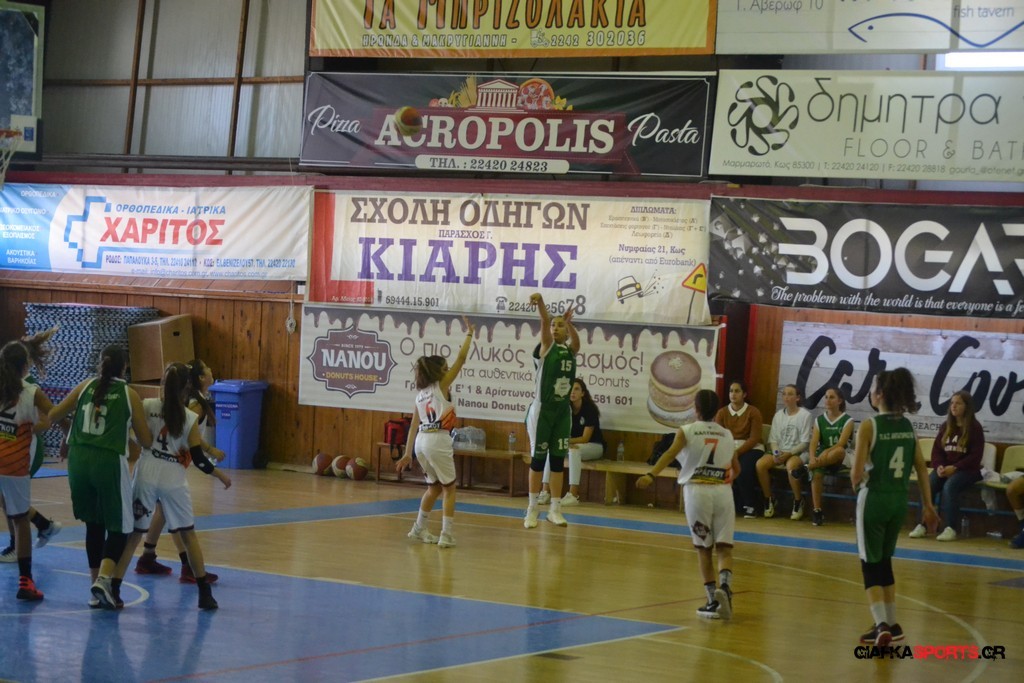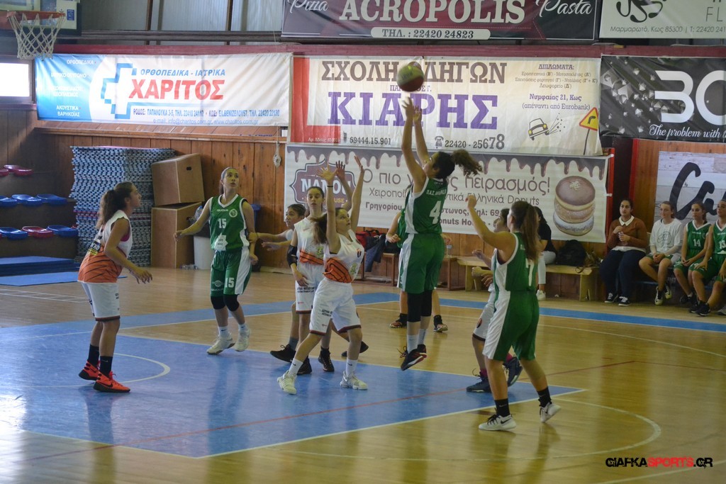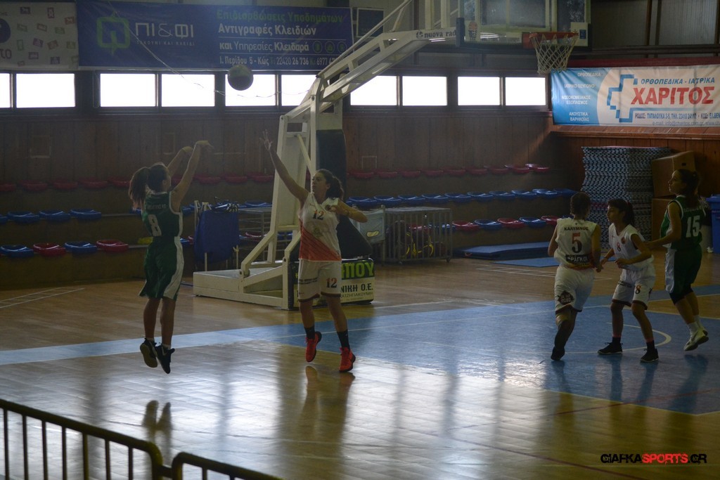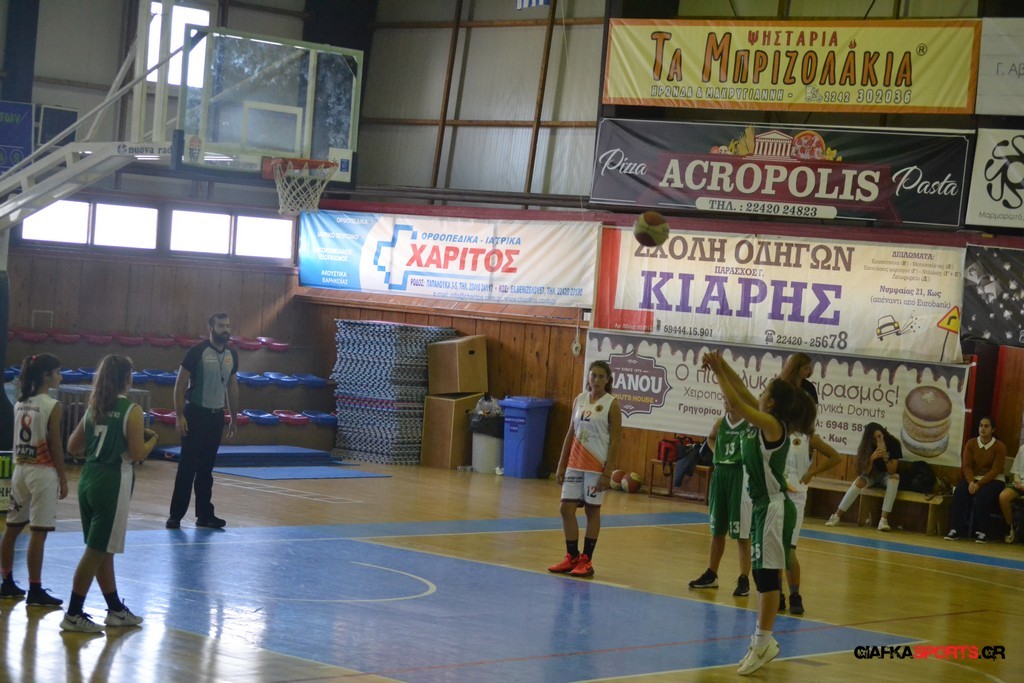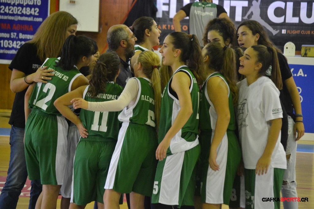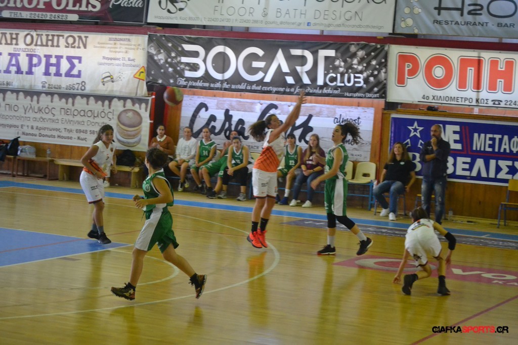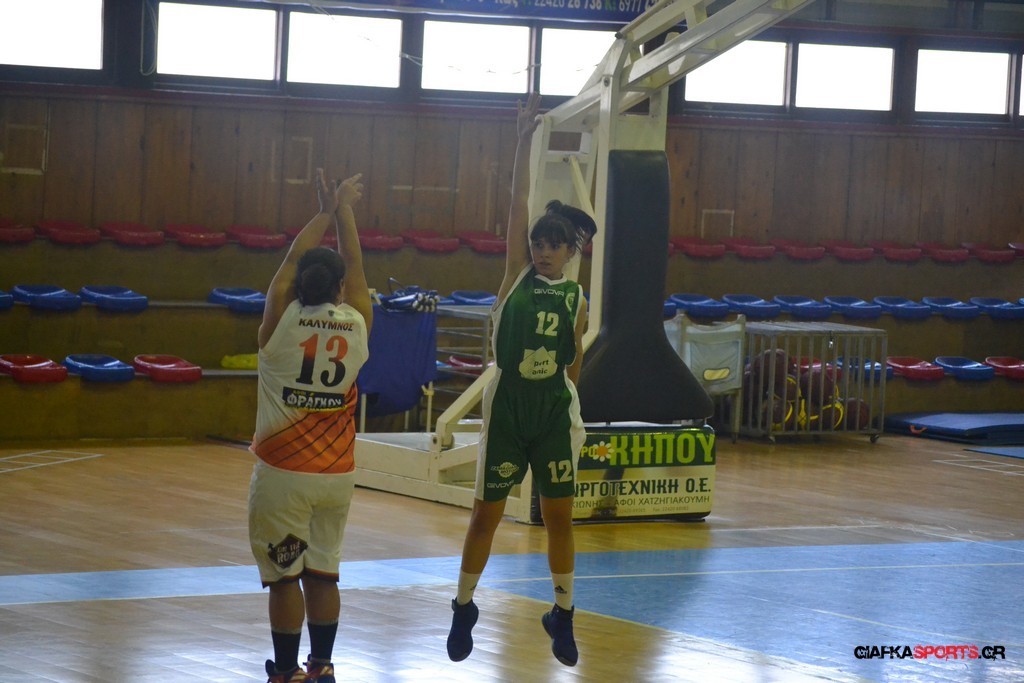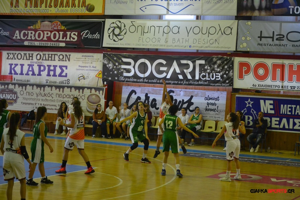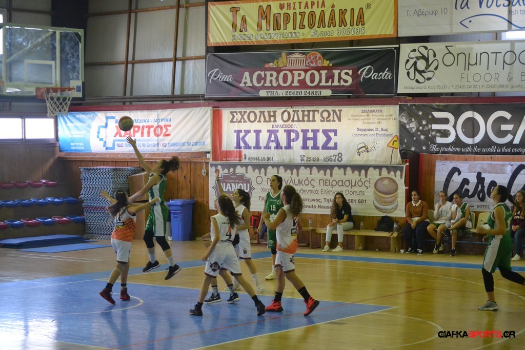 Έχοντας σε καταπληκτική μέρα τις Κουζούκα και Χατζηνικολάου που πέτυχαν συνολικά 45 πόντους ο Ανταγόρας επικράτησε με 54-40 της Ακαδημίας Καλύμνου πετυχαίνοντας έτσι την 2η του νίκη στο φετινή πρωτάθλημα. Οι “πράσινες” κατάφεραν να πάρουν προβάδισμα απ’ το πρώτο δεκάλεπτο και να “χτίσουν” στην συνέχεια πάνω σε αυτό και έφτασαν στο ροζ φύλλο αγώνος. Για την ομάδα του κ. Καλαϊτζίδη ξεχώρισαν οι Κουφάκη και Μεϊμάρη.