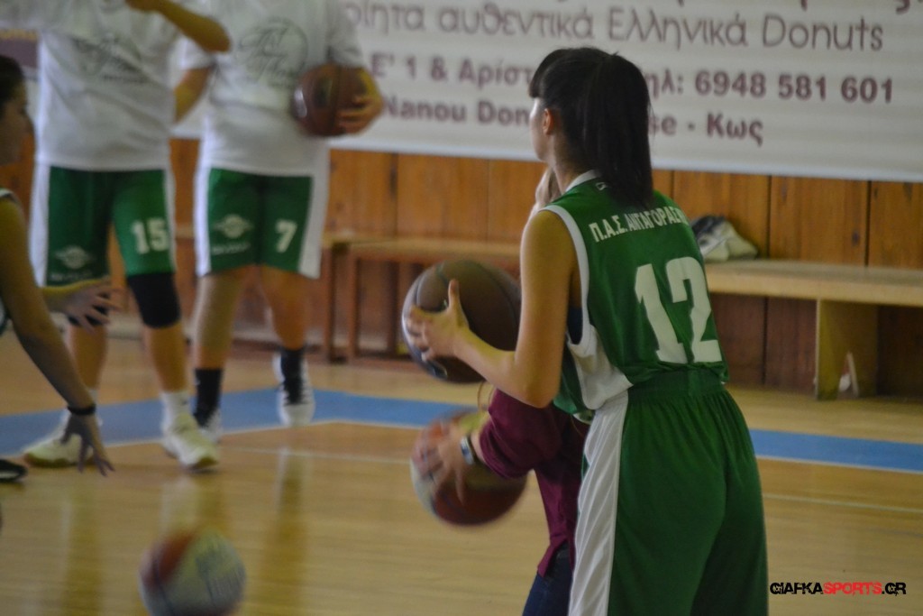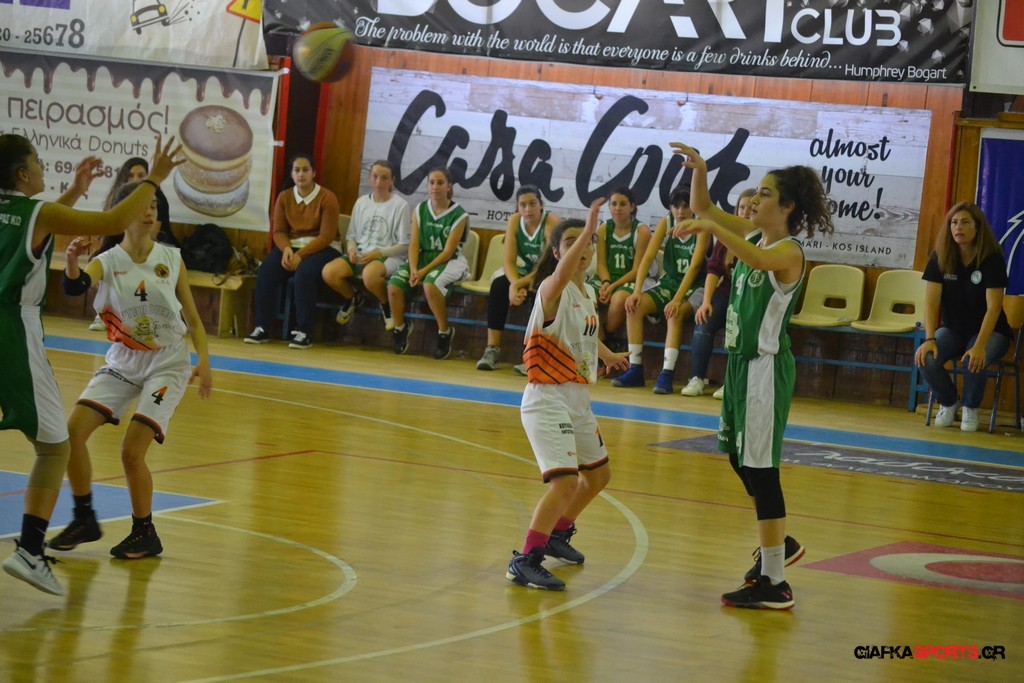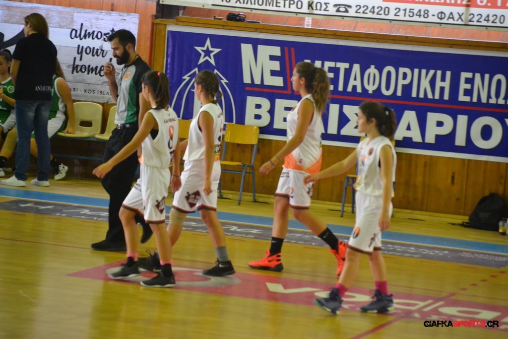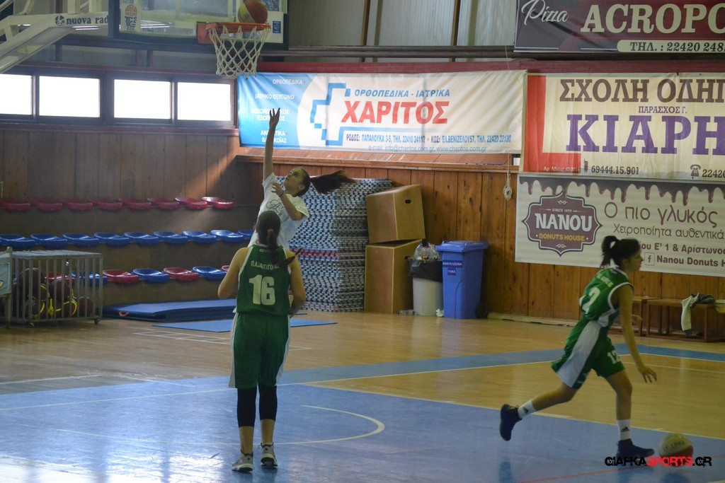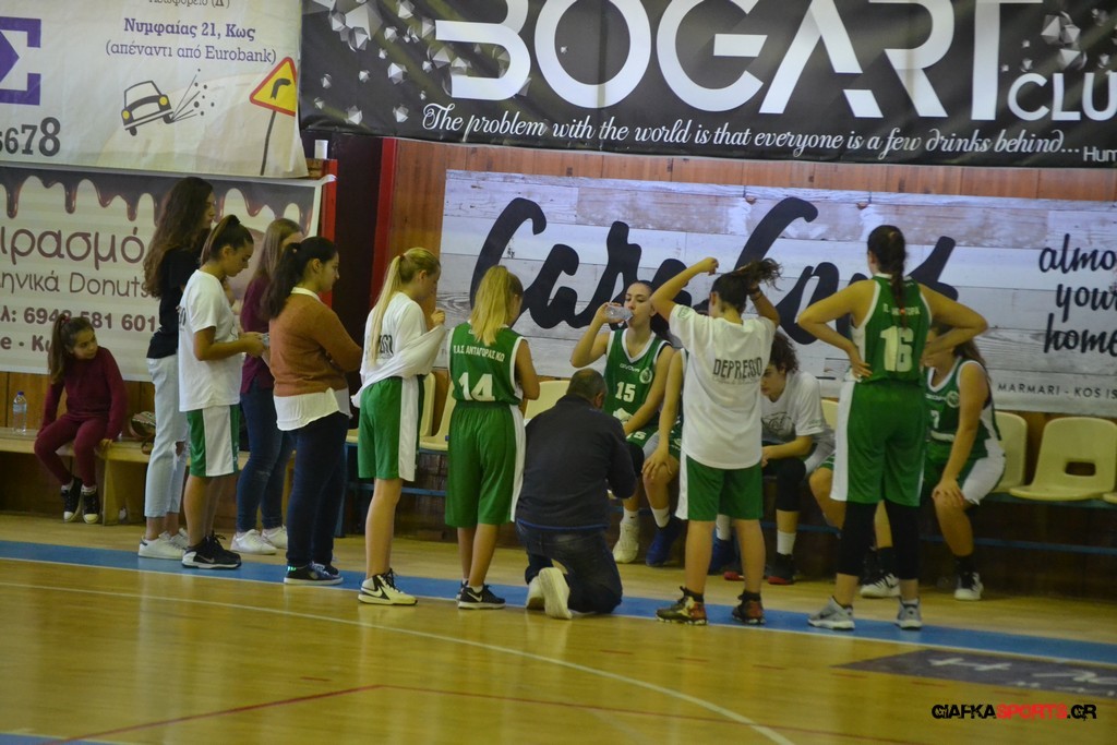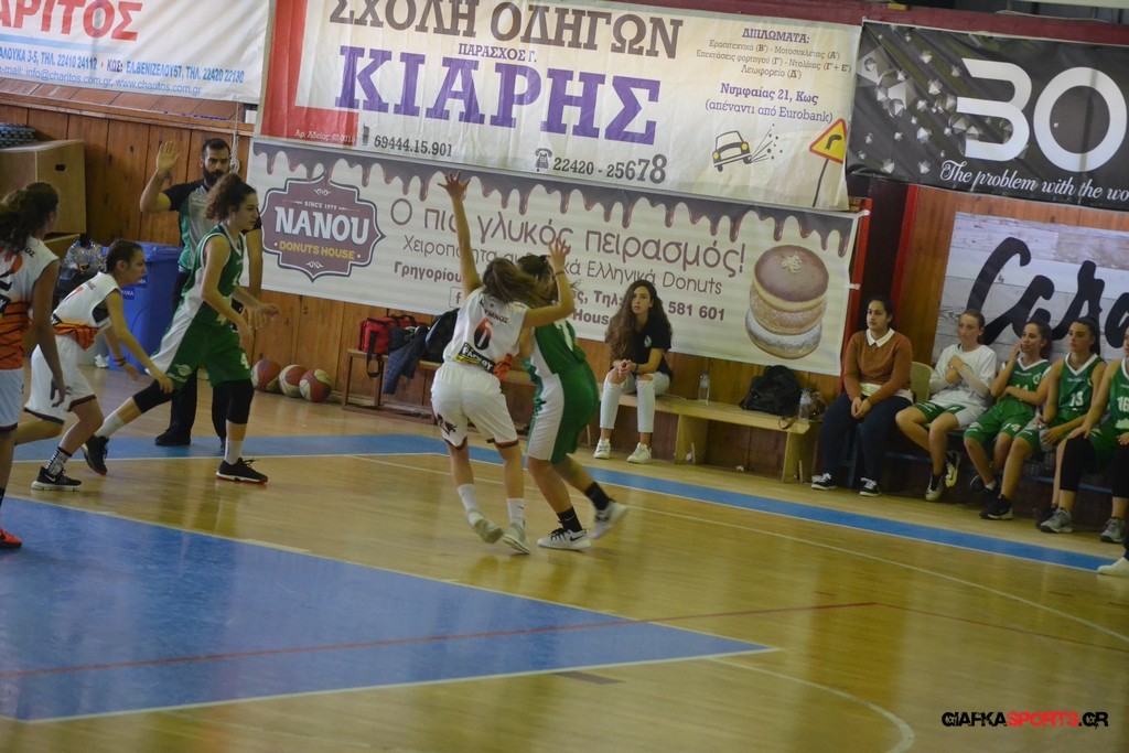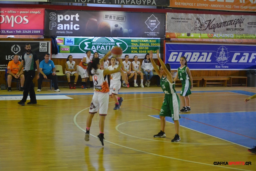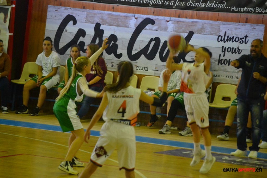 Έχοντας σε καταπληκτική μέρα τις Κουζούκα και Χατζηνικολάου που πέτυχαν συνολικά 45 πόντους ο Ανταγόρας επικράτησε με 54-40 της Ακαδημίας Καλύμνου πετυχαίνοντας έτσι την 2η του νίκη στο φετινή πρωτάθλημα. Οι “πράσινες” κατάφεραν να πάρουν προβάδισμα απ’ το πρώτο δεκάλεπτο και να “χτίσουν” στην συνέχεια πάνω σε αυτό και έφτασαν στο ροζ φύλλο αγώνος. Για την ομάδα του κ. Καλαϊτζίδη ξεχώρισαν οι Κουφάκη και Μεϊμάρη.