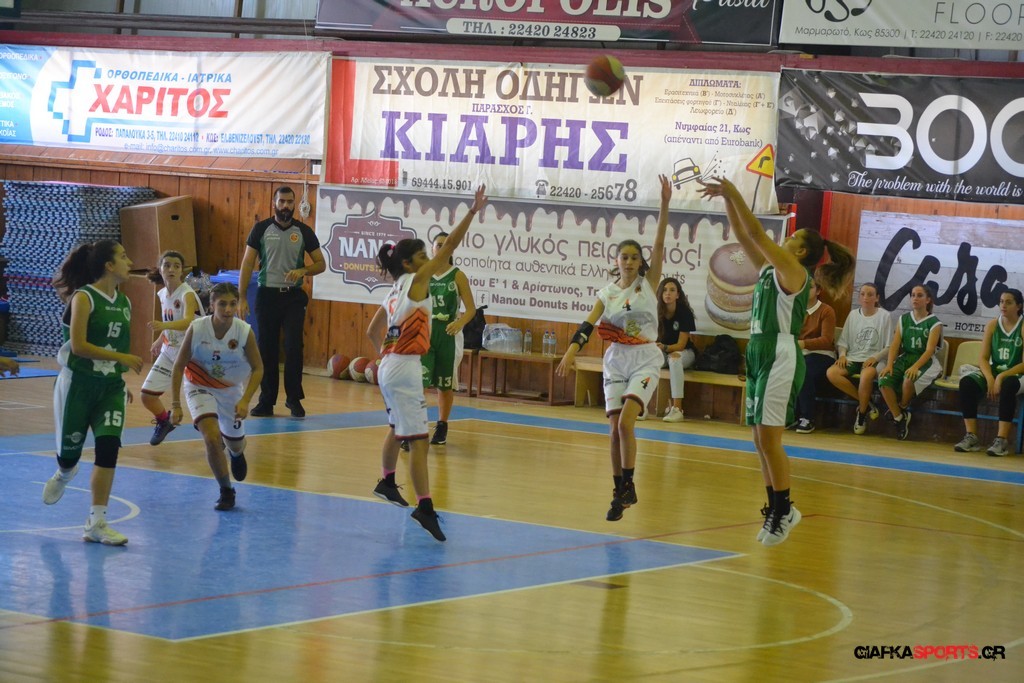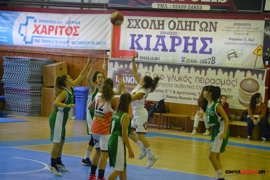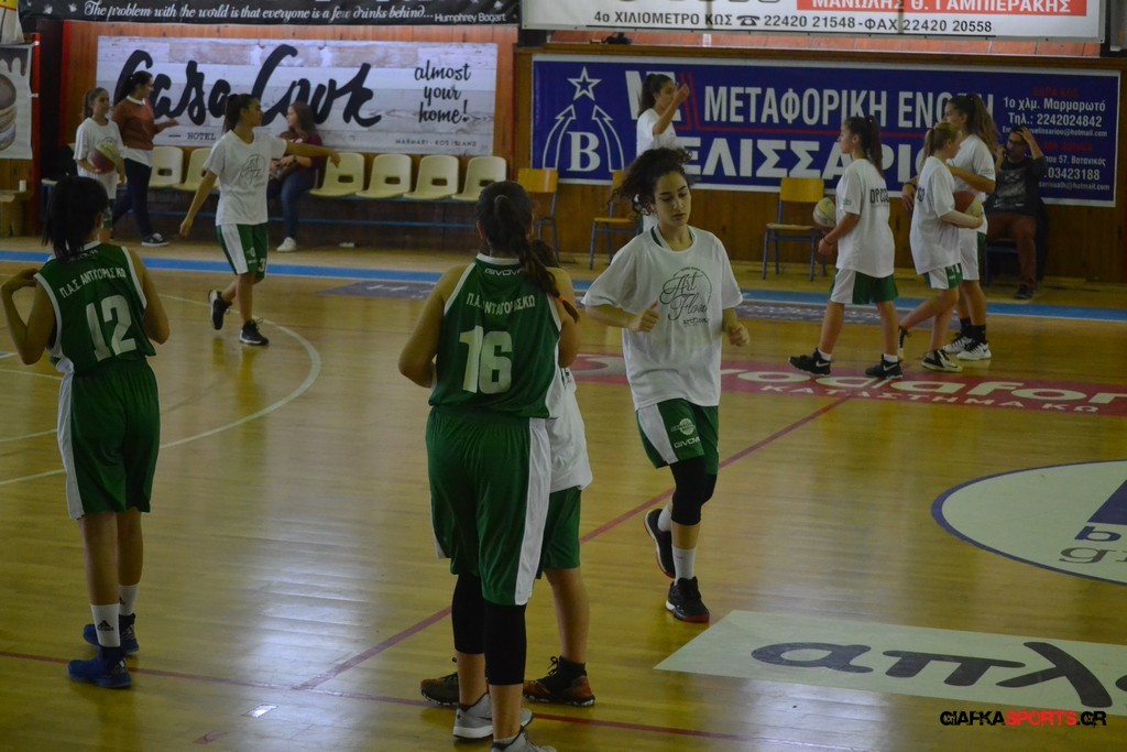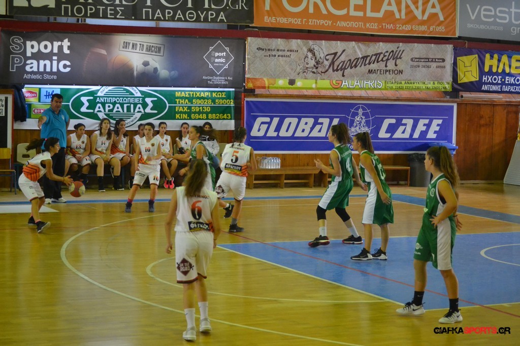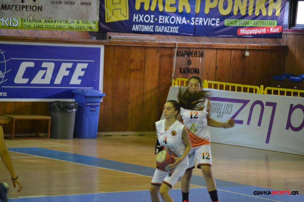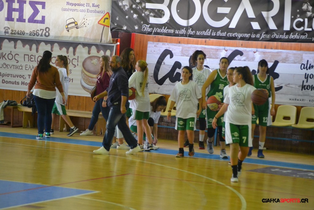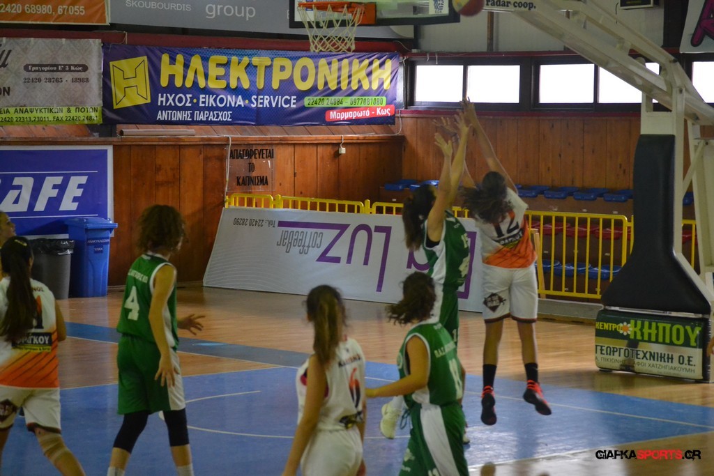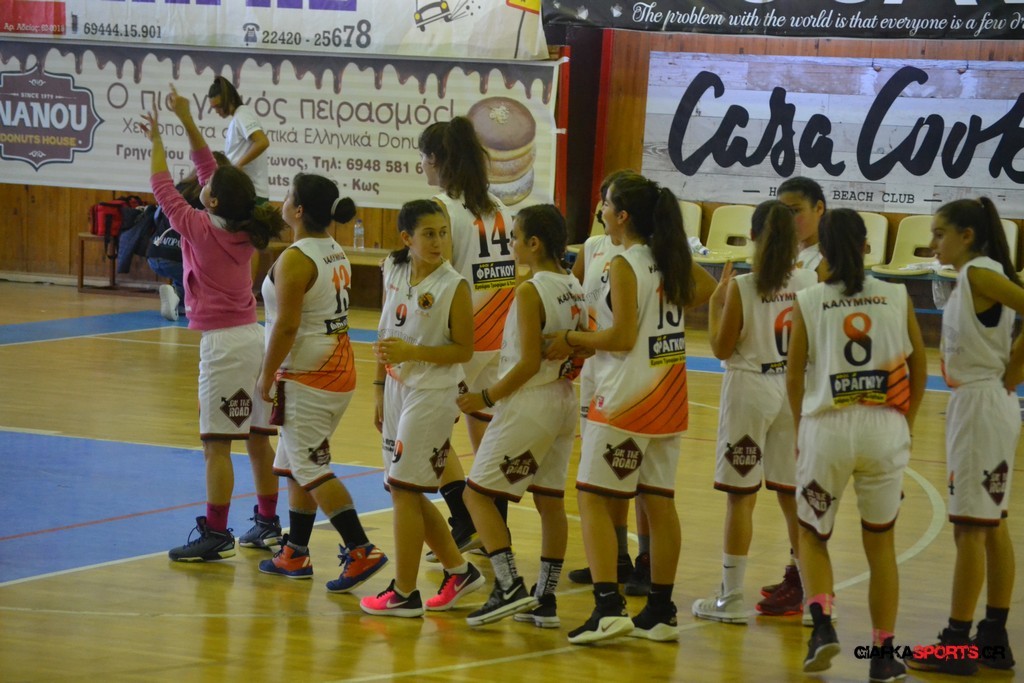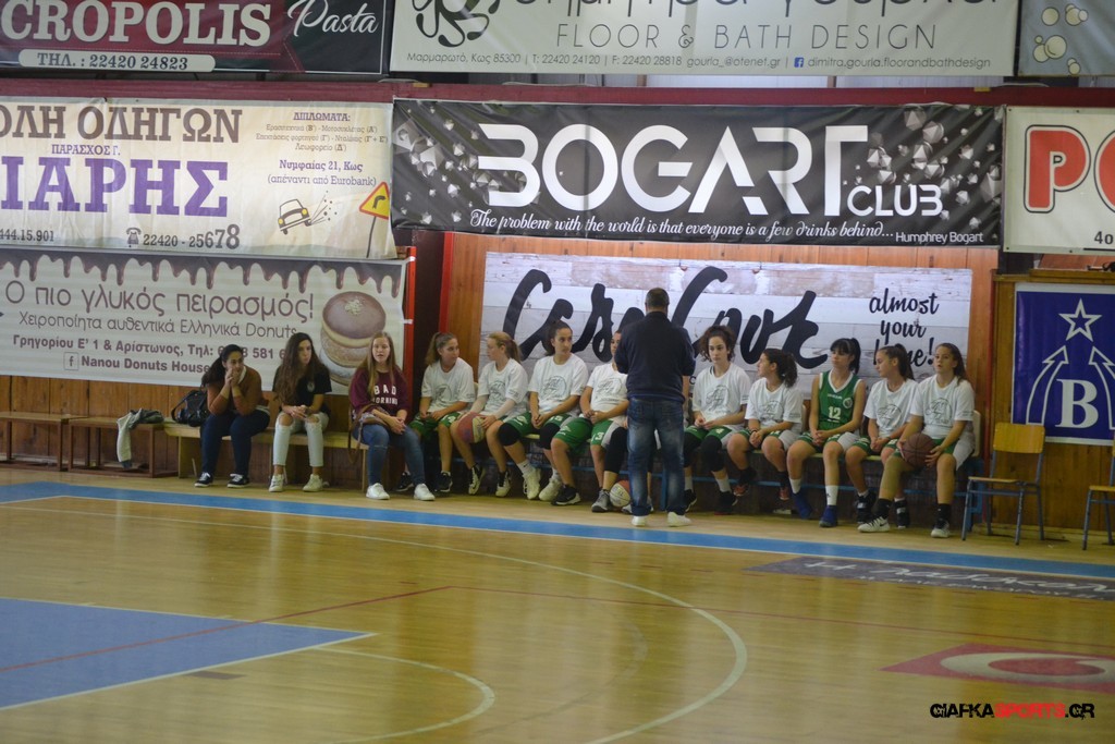 Έχοντας σε καταπληκτική μέρα τις Κουζούκα και Χατζηνικολάου που πέτυχαν συνολικά 45 πόντους ο Ανταγόρας επικράτησε με 54-40 της Ακαδημίας Καλύμνου πετυχαίνοντας έτσι την 2η του νίκη στο φετινή πρωτάθλημα. Οι “πράσινες” κατάφεραν να πάρουν προβάδισμα απ’ το πρώτο δεκάλεπτο και να “χτίσουν” στην συνέχεια πάνω σε αυτό και έφτασαν στο ροζ φύλλο αγώνος. Για την ομάδα του κ. Καλαϊτζίδη ξεχώρισαν οι Κουφάκη και Μεϊμάρη.