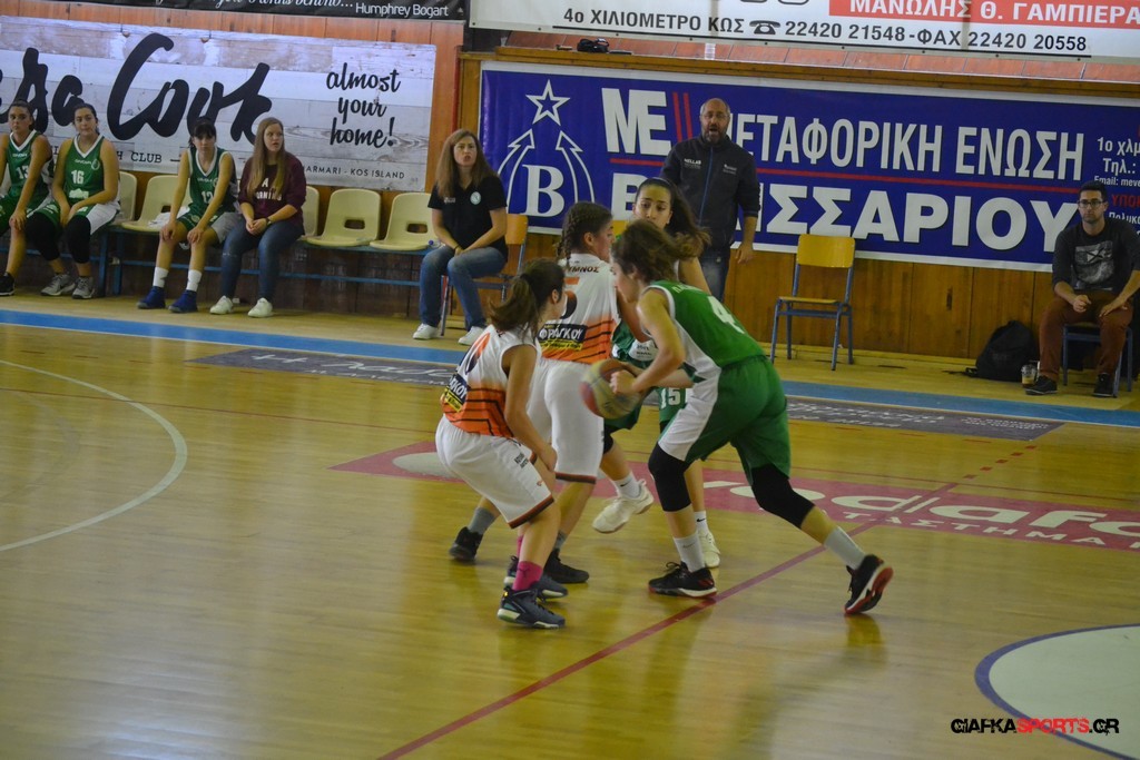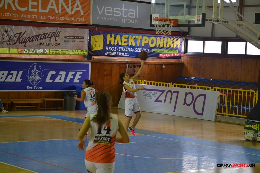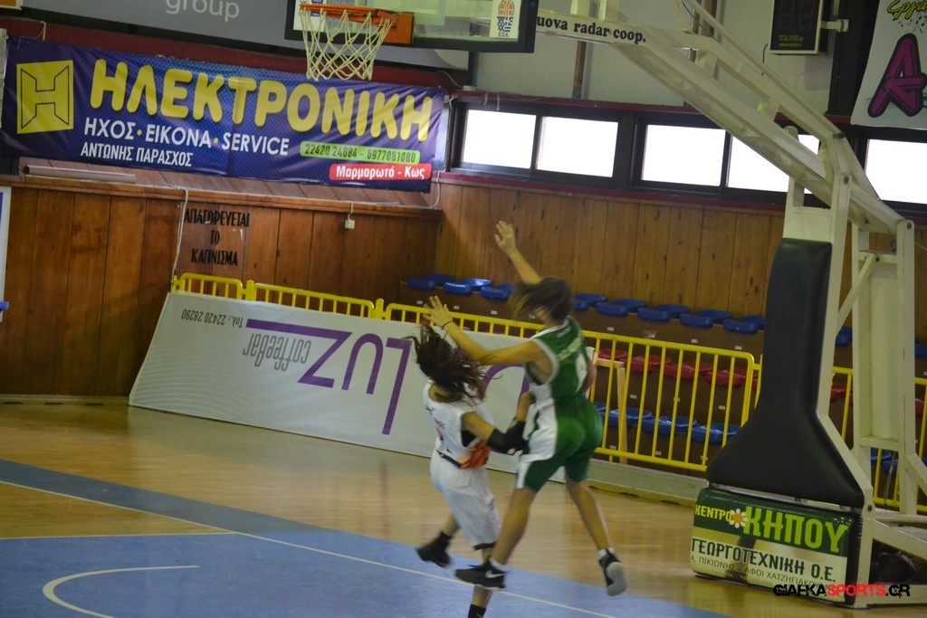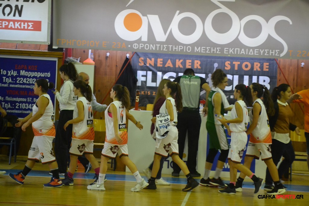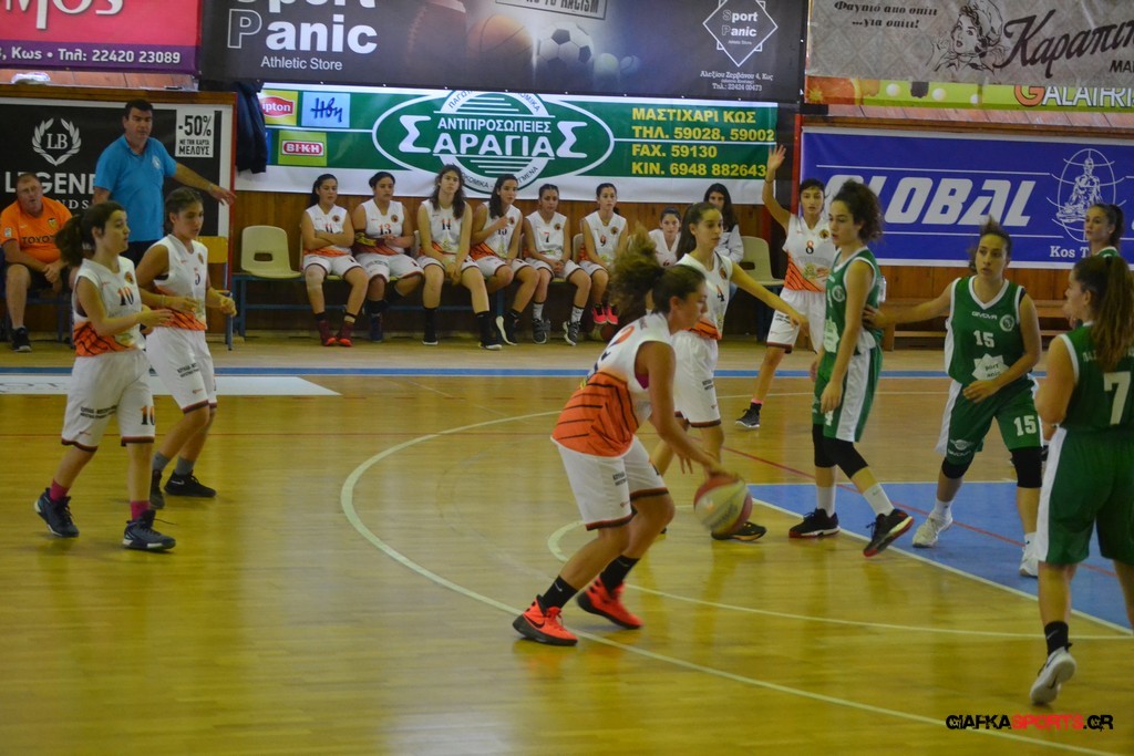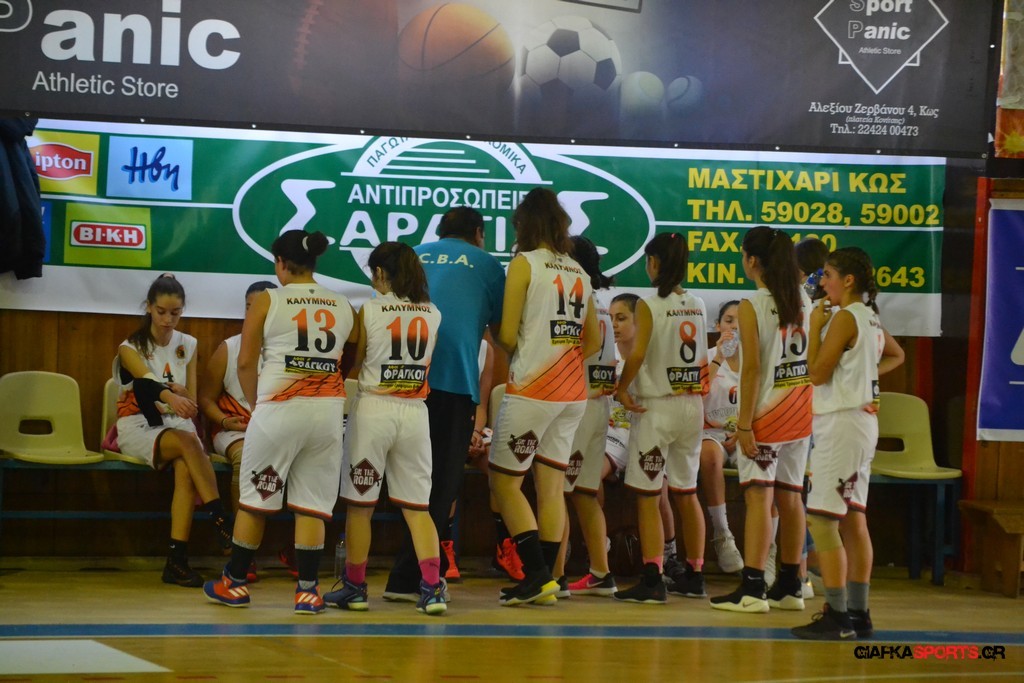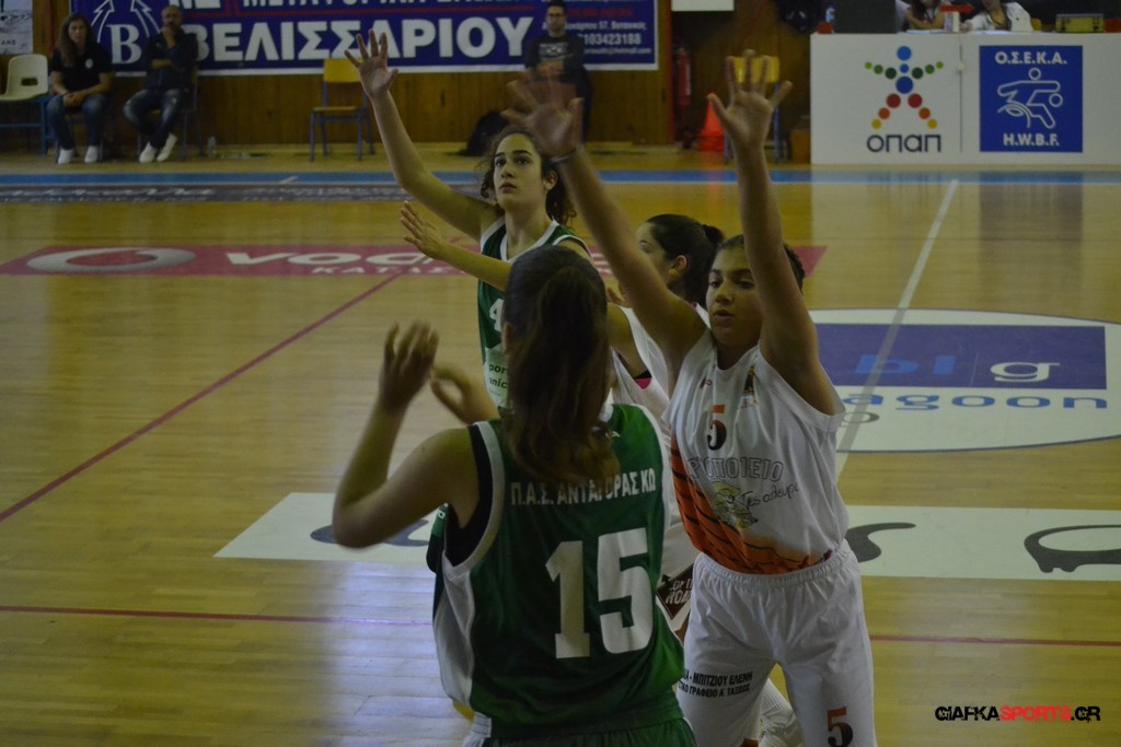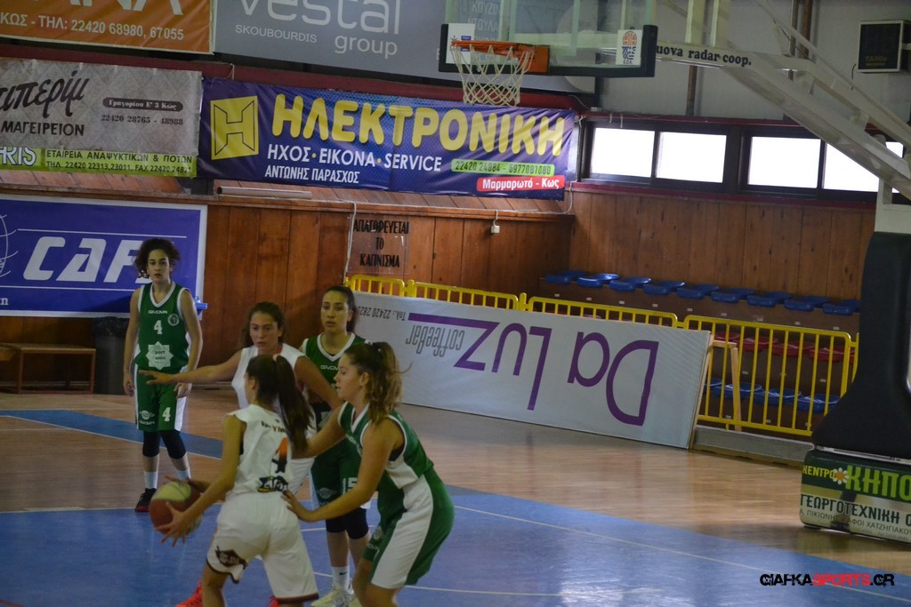 Έχοντας σε καταπληκτική μέρα τις Κουζούκα και Χατζηνικολάου που πέτυχαν συνολικά 45 πόντους ο Ανταγόρας επικράτησε με 54-40 της Ακαδημίας Καλύμνου πετυχαίνοντας έτσι την 2η του νίκη στο φετινή πρωτάθλημα. Οι “πράσινες” κατάφεραν να πάρουν προβάδισμα απ’ το πρώτο δεκάλεπτο και να “χτίσουν” στην συνέχεια πάνω σε αυτό και έφτασαν στο ροζ φύλλο αγώνος. Για την ομάδα του κ. Καλαϊτζίδη ξεχώρισαν οι Κουφάκη και Μεϊμάρη.