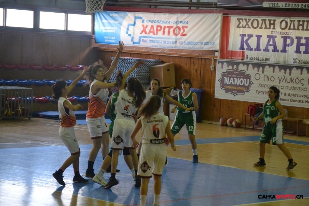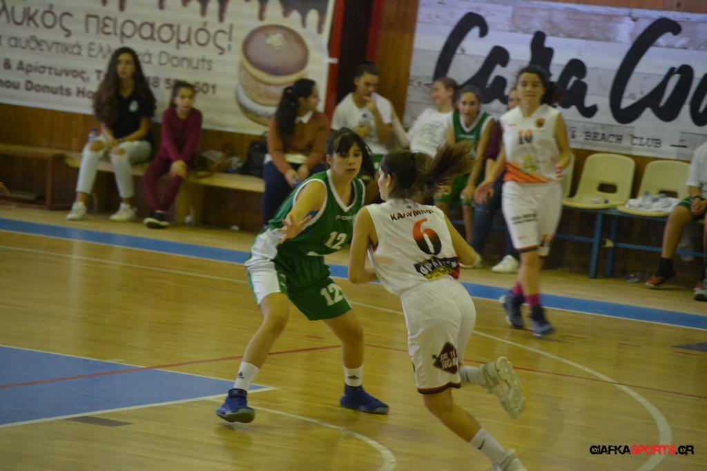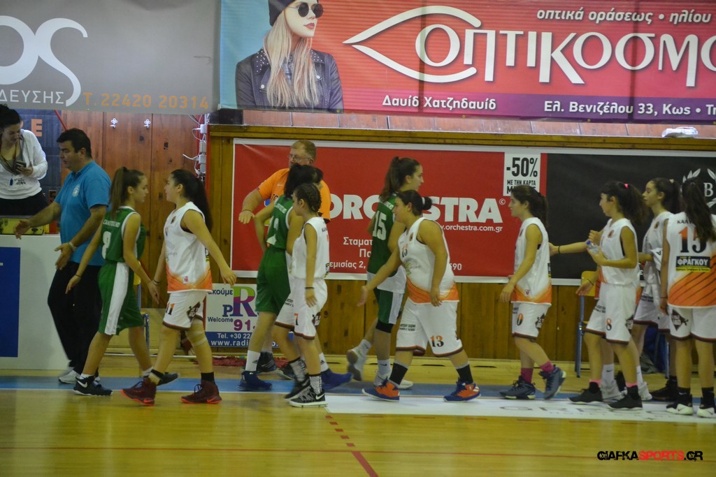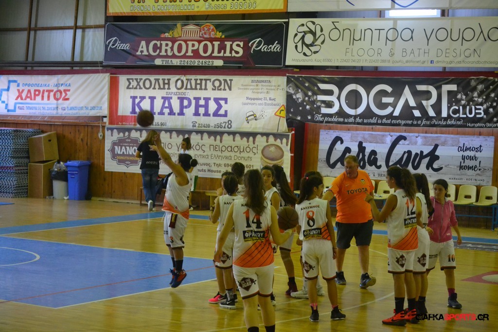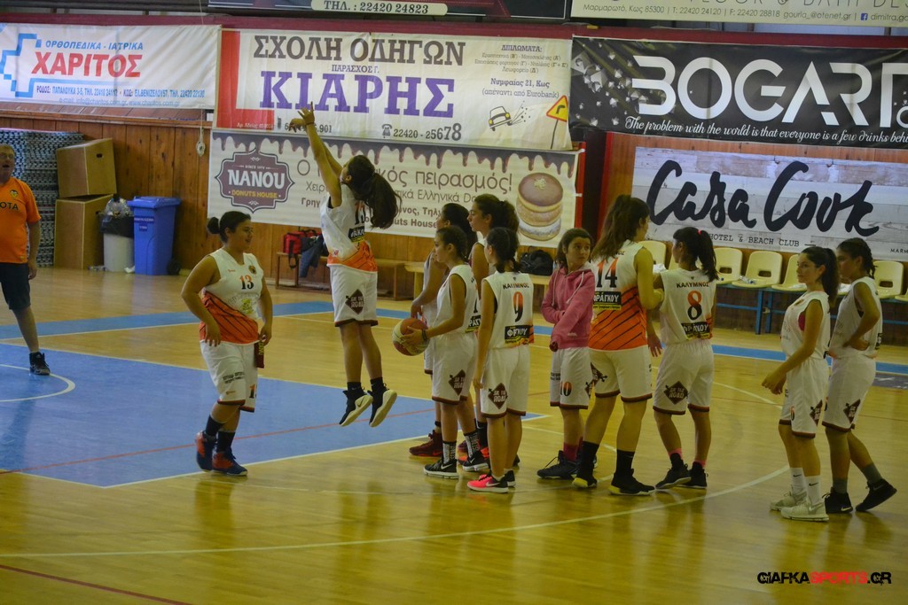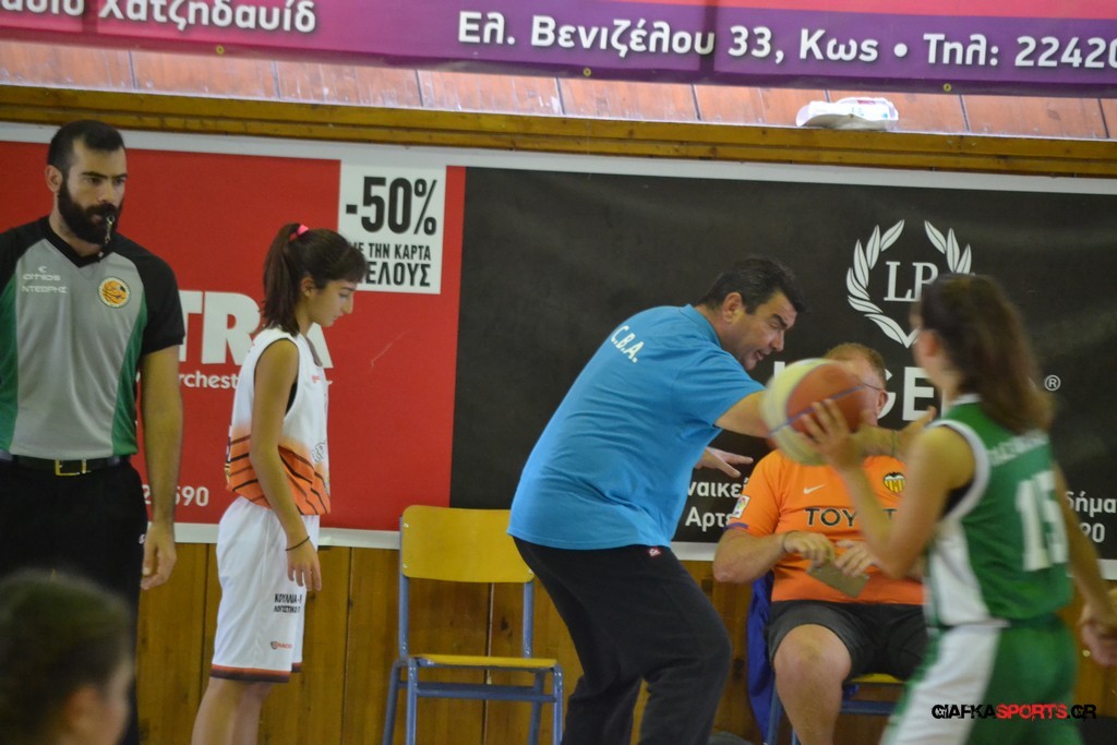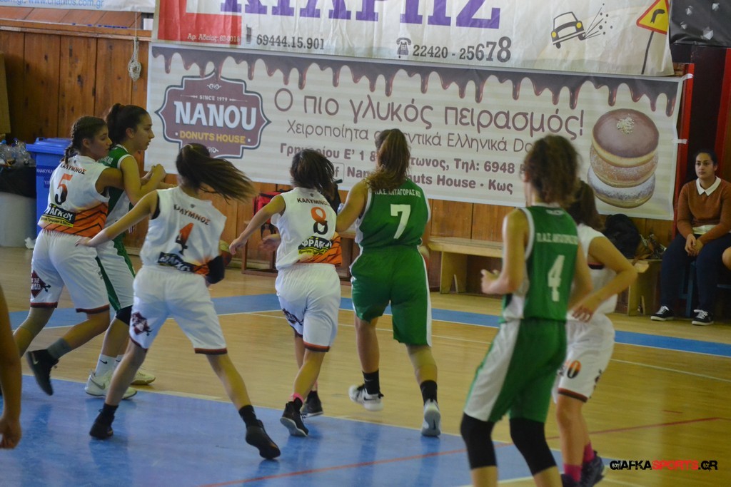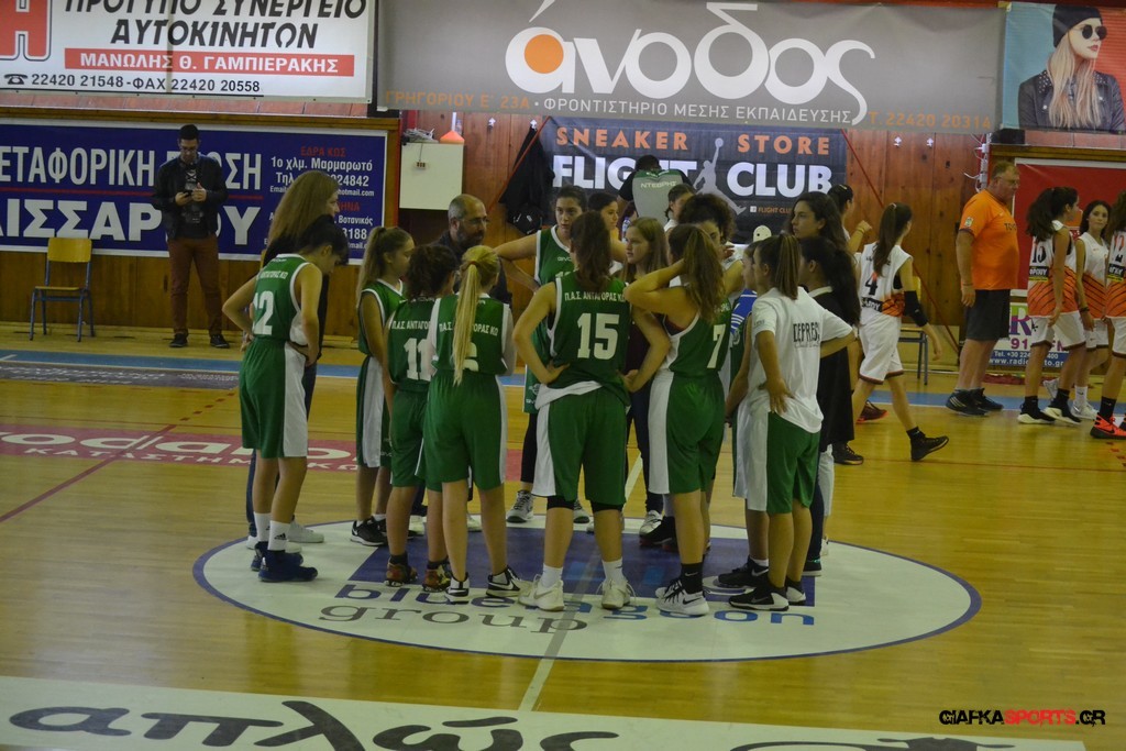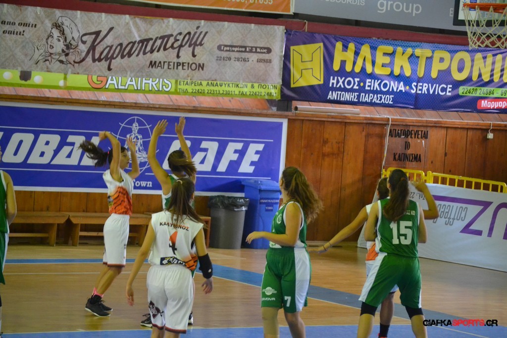Έχοντας σε καταπληκτική μέρα τις Κουζούκα και Χατζηνικολάου που πέτυχαν συνολικά 45 πόντους ο Ανταγόρας επικράτησε με 54-40 της Ακαδημίας Καλύμνου πετυχαίνοντας έτσι την 2η του νίκη στο φετινή πρωτάθλημα. Οι “πράσινες” κατάφεραν να πάρουν προβάδισμα απ’ το πρώτο δεκάλεπτο και να “χτίσουν” στην συνέχεια πάνω σε αυτό και έφτασαν στο ροζ φύλλο αγώνος. Για την ομάδα του κ. Καλαϊτζίδη ξεχώρισαν οι Κουφάκη και Μεϊμάρη.
