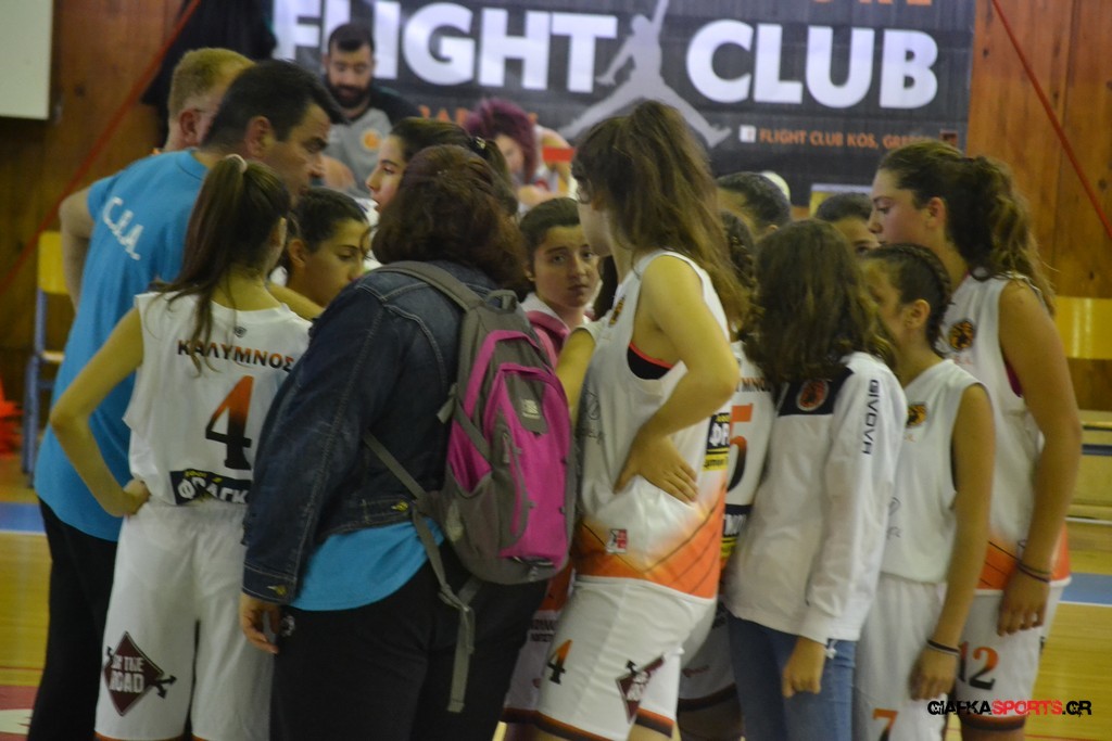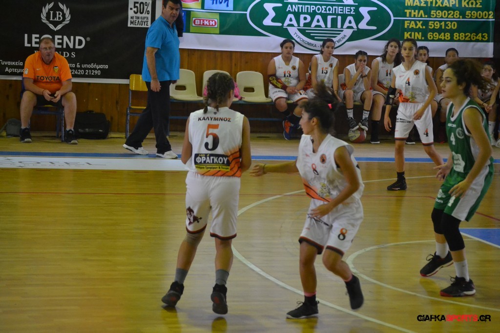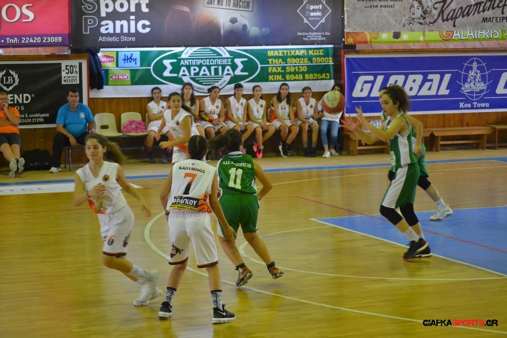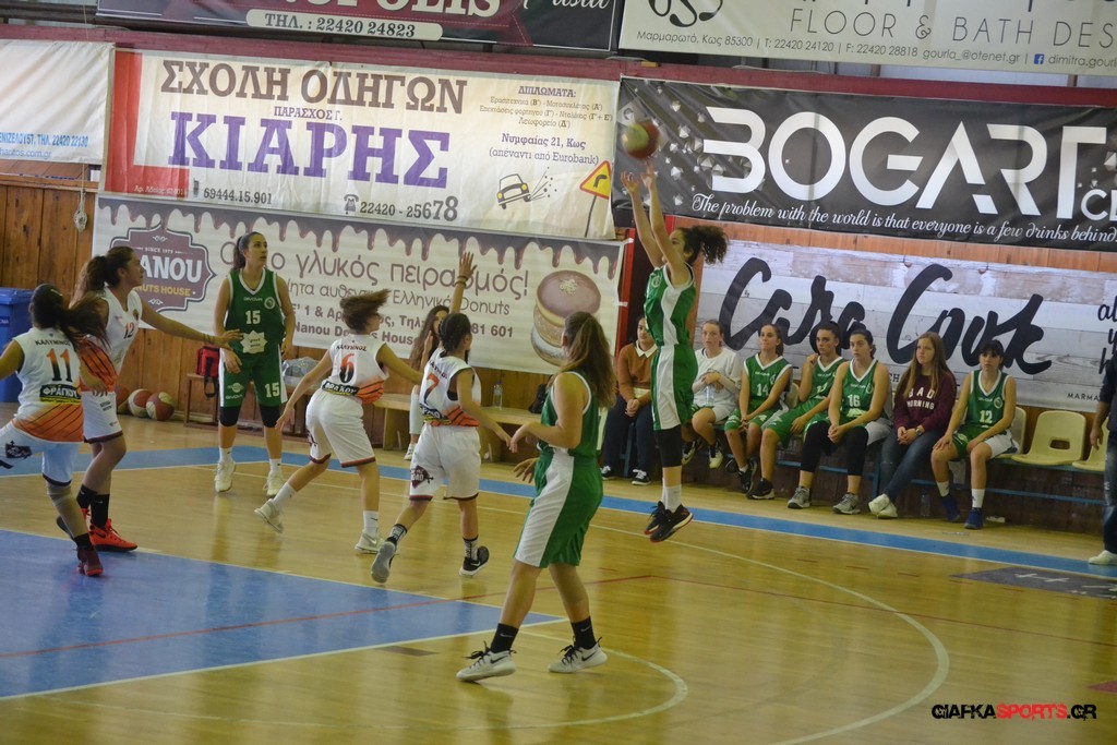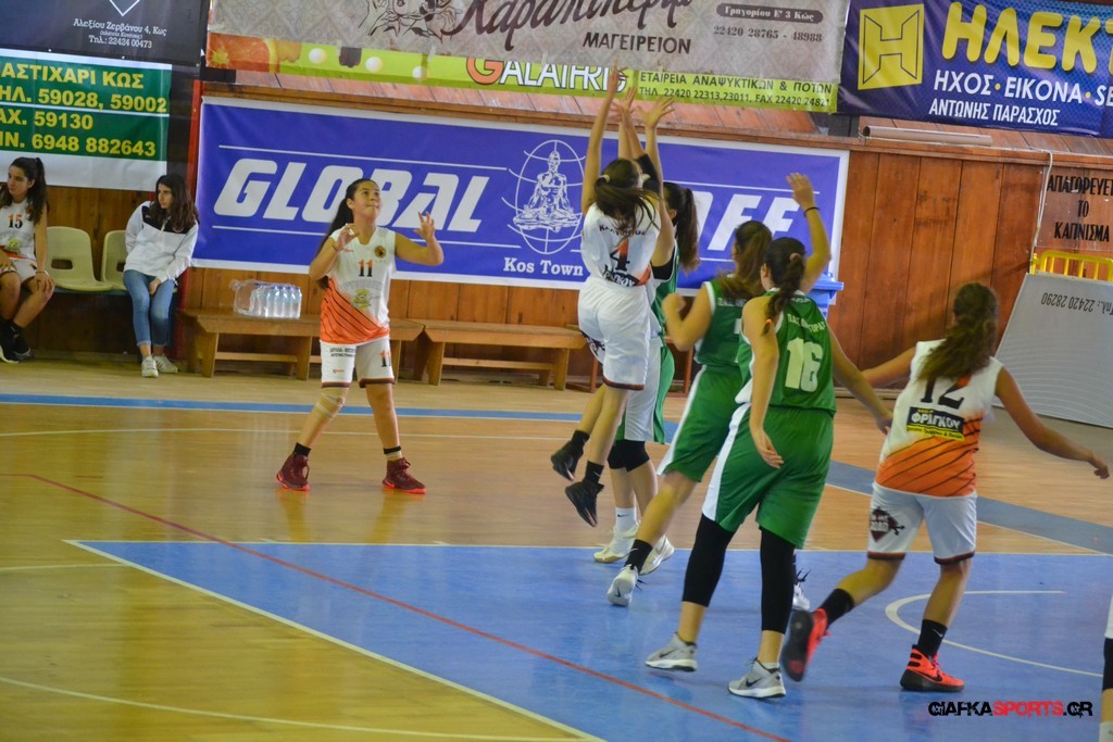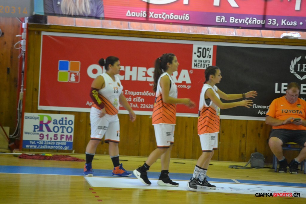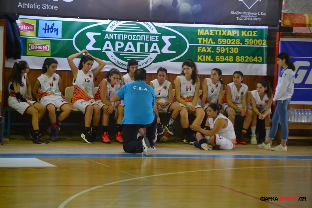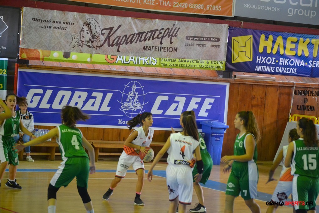 Έχοντας σε καταπληκτική μέρα τις Κουζούκα και Χατζηνικολάου που πέτυχαν συνολικά 45 πόντους ο Ανταγόρας επικράτησε με 54-40 της Ακαδημίας Καλύμνου πετυχαίνοντας έτσι την 2η του νίκη στο φετινή πρωτάθλημα. Οι “πράσινες” κατάφεραν να πάρουν προβάδισμα απ’ το πρώτο δεκάλεπτο και να “χτίσουν” στην συνέχεια πάνω σε αυτό και έφτασαν στο ροζ φύλλο αγώνος. Για την ομάδα του κ. Καλαϊτζίδη ξεχώρισαν οι Κουφάκη και Μεϊμάρη.
