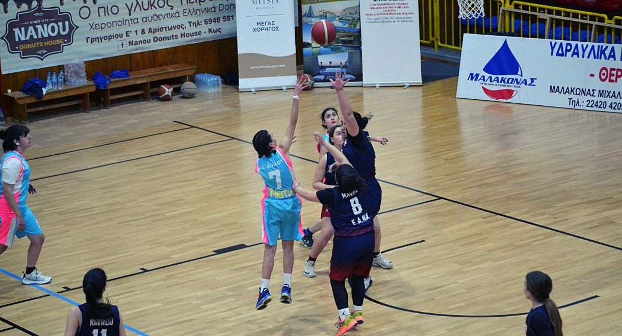 Στο ματς που διεξήχθη στο κλειστό γυμναστήριο Κω για το πρωτάθλημα κορασίδων η Α.Ε Δικαίου επικράτησε με 45-31 της Ε.Α.ΚΑ και συνεχίζει έτσι την πορεία της για το Final-4. Τα κορίτσια της Κασσιανής Παπαδοπούλου είχαν σε εξαιρετική μέρα της Στεργία Δρόσου που πέτυχε 22 πόντους και κατάφεραν έχοντας απ’ την αρχή του αγώνα σταθερά το προβάδισμα να φτάσουν στο ροζ φύλλο αγώνος. Πρώτη σκόρερ για την Ε.Α.ΚΑ ήταν η Σ. Μαύρου με 10 πόντους.