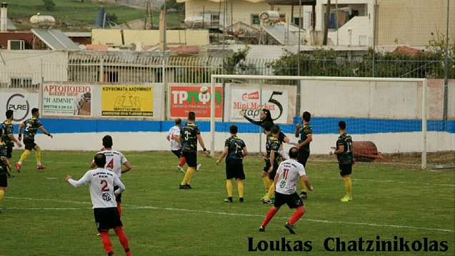Οι γηπεδούχοι προσπαθούσαν από στημένες μπάλες να απειλήσουν και στο 22’ κατάφεραν να πάρουν προβάδισμα στο σκορ όταν ο Πανόπουλος με ωραία εκτέλεση φάουλ έστειλε την μπάλα στην δεξιά γωνία του Καραγιάννη για 1-0.