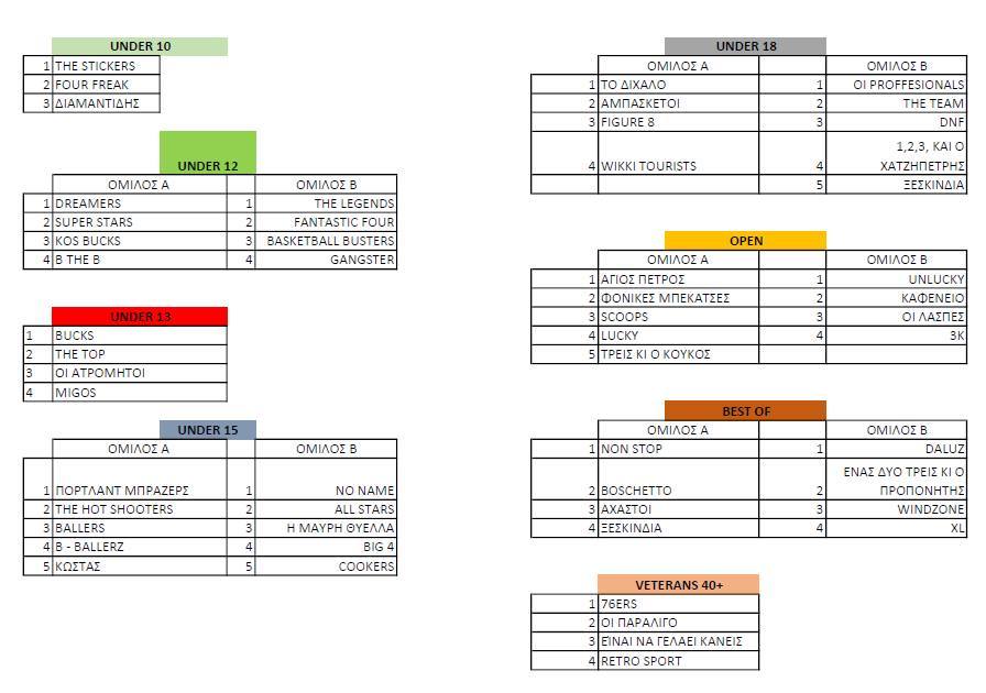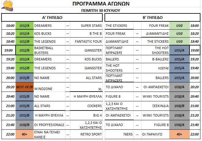 Παρακάτω τα γκρουπ των ομάδων και το πρόγραμμα της πρώτης ημέρας.