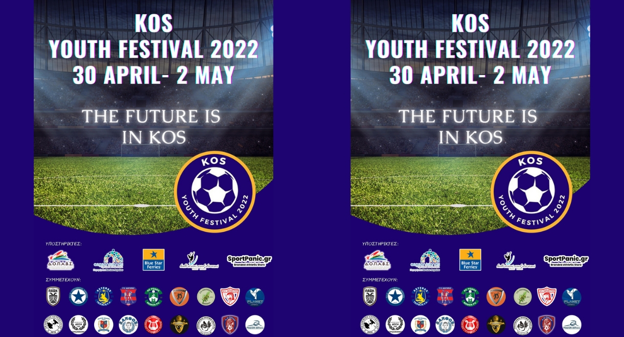 Ξεκινάει το Σάββατο 30 Απριλίου το Kos Youth Festival 2022 , με την συμμετοχή 18 ομάδων από όλη την Ελλάδα και τριών μεγάλων ΠΑΕ της SuperLeague, τον Π.Α.Ο.Κ., τον Ατρόμητο Αθηνών και τον Αστέρα Τρίπολης.