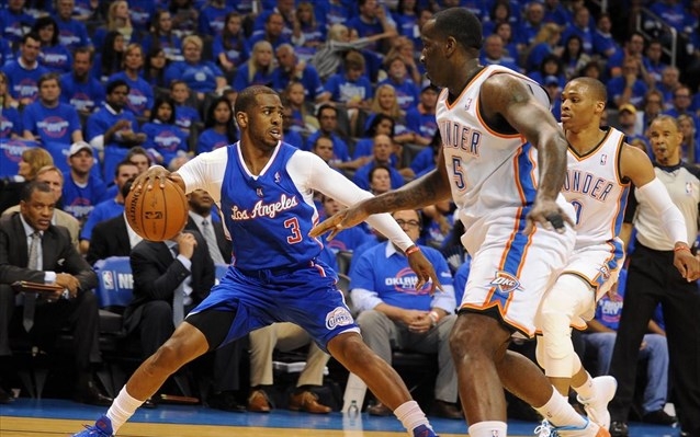 Στην Οκλαχόμα, ο Κρις Πολ εκτέλεσε τη Θάντερ καθώς με 8/9 τρίποντα και συνολικά 32 πόντους οδήγησε τους Κλίπερς στο 1-0. Η ομάδα του Λος Άντζελες νίκησε 122-105 και πήρε το πλεονέκτημα της έδρας, την ώρα που οι γηπεδούχοι «προδόθηκαν» από τον Κέβιν Ντουράντ και είχαν μόνο τον Ράσελ Γουέστμπρουκ (29 πόντοι) να προσπαθεί.