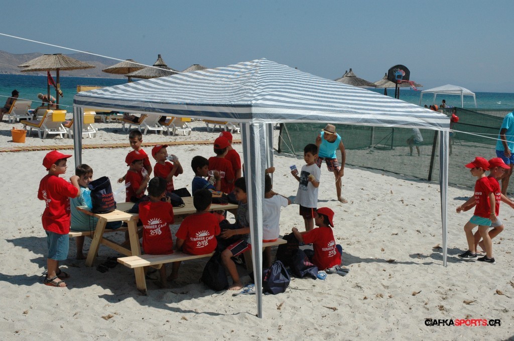 Ο υπεύθυνος το camp , Σταμάτης Τογρού καλωσόρισε τα παιδιά τα οποία χωρίστηκαν ανά ομάδες, πήραν τα μπλουζάκια τους, τα καπέλα τους και τις τσάντες τους και στην συνέχεια ξεκίνησαν τις αθλητικές του δραστηριότητες.