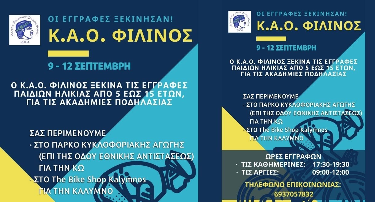 Ξεκίνησαν οι εγγραφές στο ποδηλατικό τμήμα του ΦΙΛΙΝΟΥ