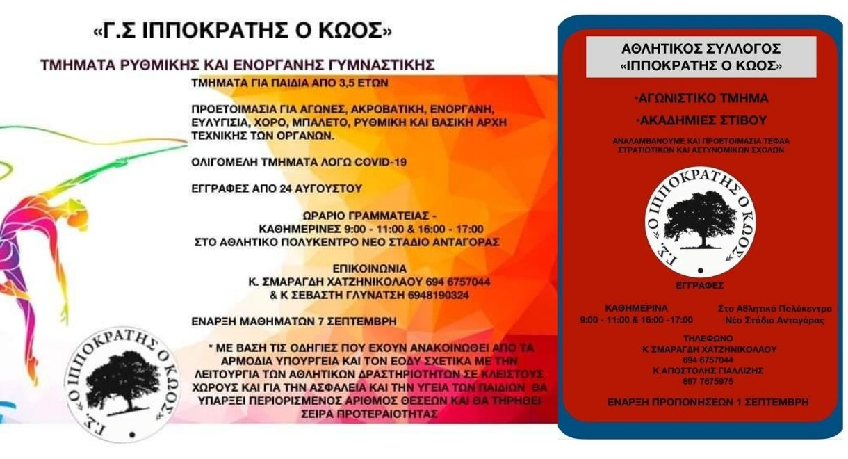 Ξεκίνησαν οι εγγραφές στον Ιπποκράτη τον Κώο με τμήματα ρυθμικής και ενόργανης γυμναστικής.