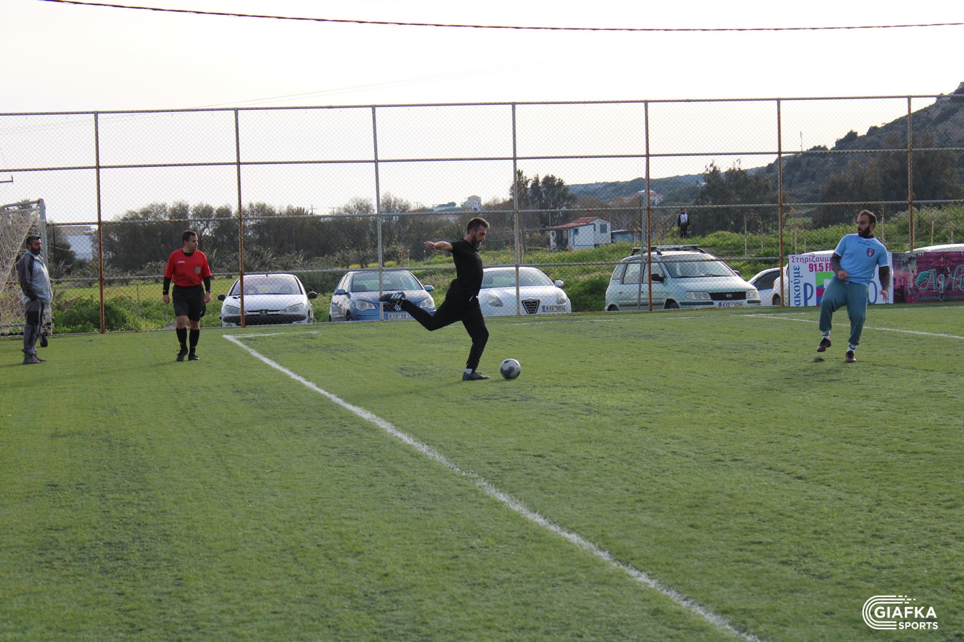 Οι φιλοξενούμενοι πήραν προβάδισμα με εύστοχη εκτέλεση πέναλτι του Μανώλη Δρόσου ενώ στην συνέχεια ο Ζήκας απόκρουσε το πέναλτι του Τσιτσιλιάγκου με το 0-1 να μένει μέχρι το φινάλε του πρώτου μέρος. Στο δεύτερο ημίχρονο η Δόξα μπήκε καλύτερα και κατάφερε να κάνει ανατροπή με εκτέλεση φάουλ του Τσιτσιλιάγκου και ψηλοκρεμαστό πλασέ του Παντελή για το 2-1.