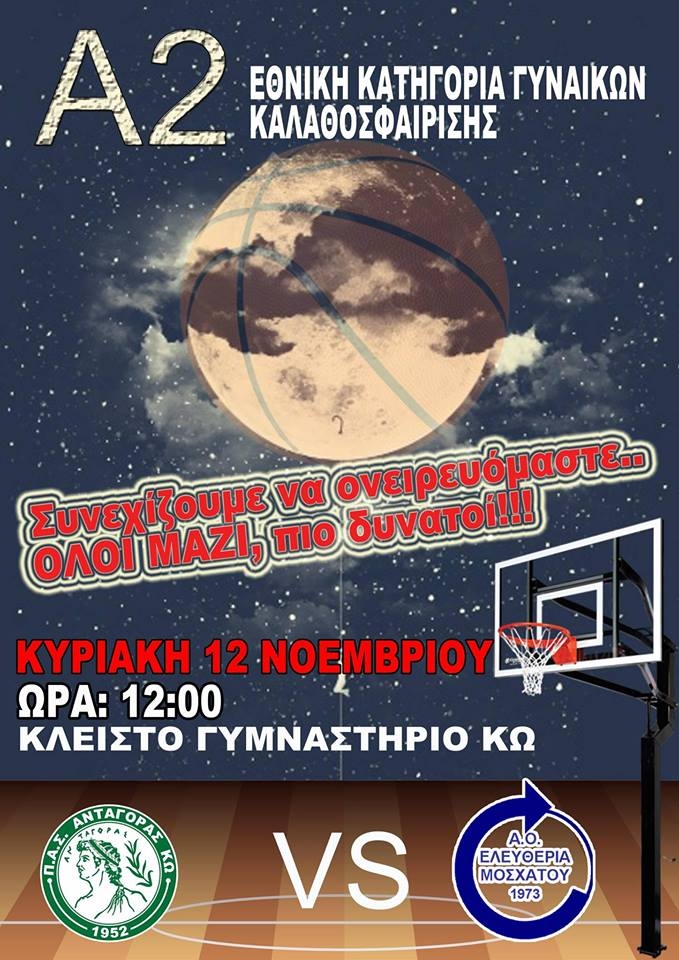 Την Ελευθερία Μοσχάτου υποδέχεται ο Ανταγόρας την Κυριακή στις 12:00 στο Κλειστό γυμναστήριο Κω.