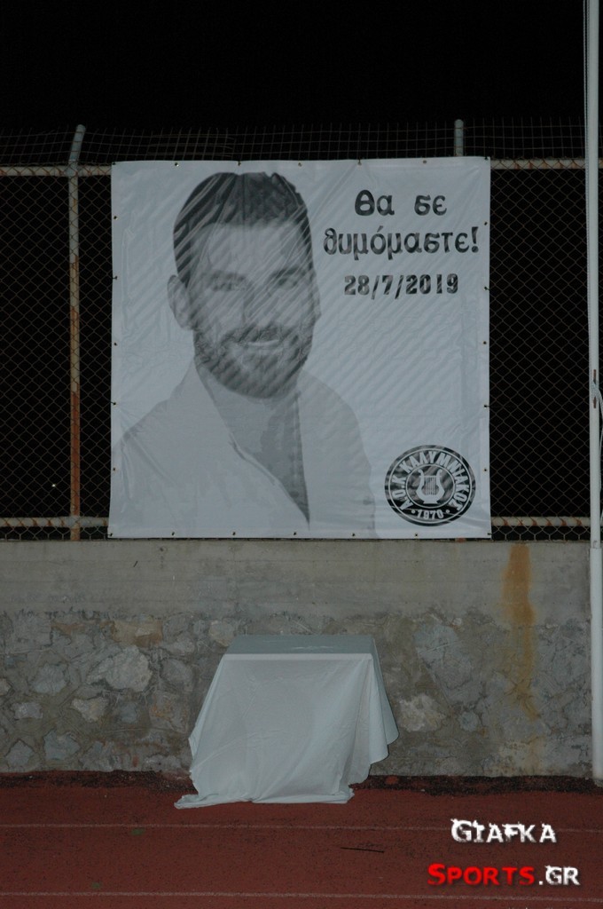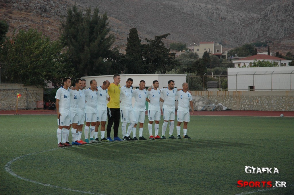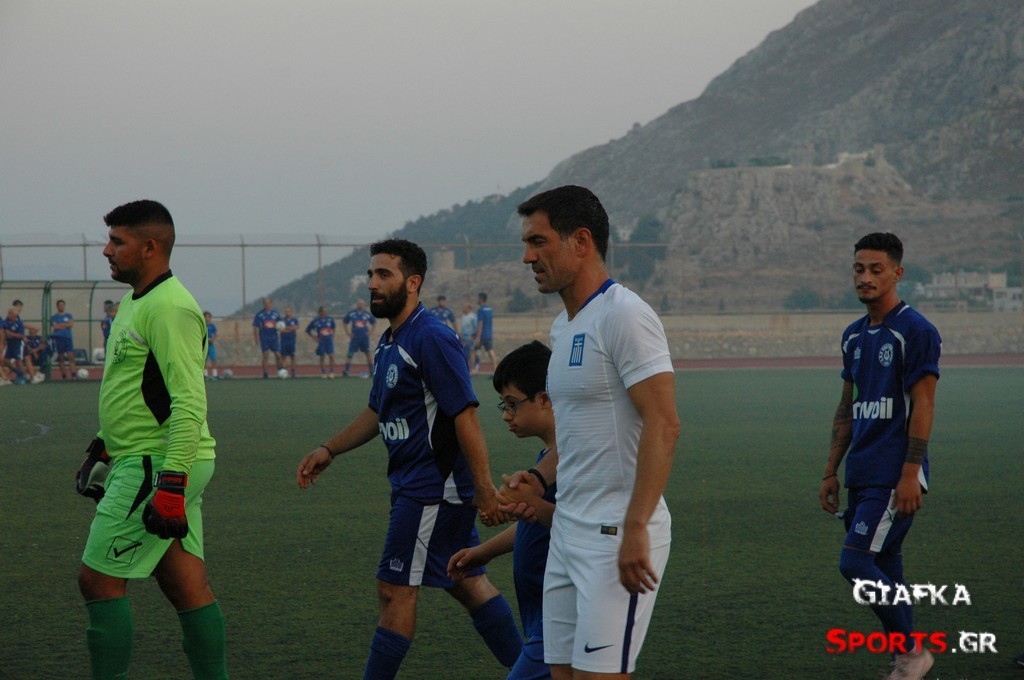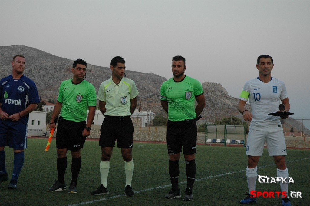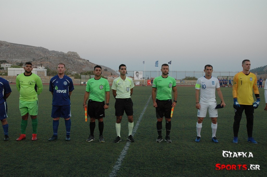Πριν την έναρξη της αναμέτρησης ο Δήμαρχος Καλύμνου τίμησε τους αστέρες της Εθνικής παραδίδοντας τιμητική πλακέτα στον Γιώργο Καραγκούνη όπως και τον Καλυμνιακό γι’ αυτήν την όμορφη προσπάθεια.