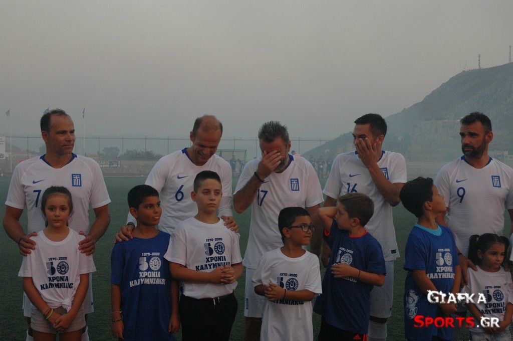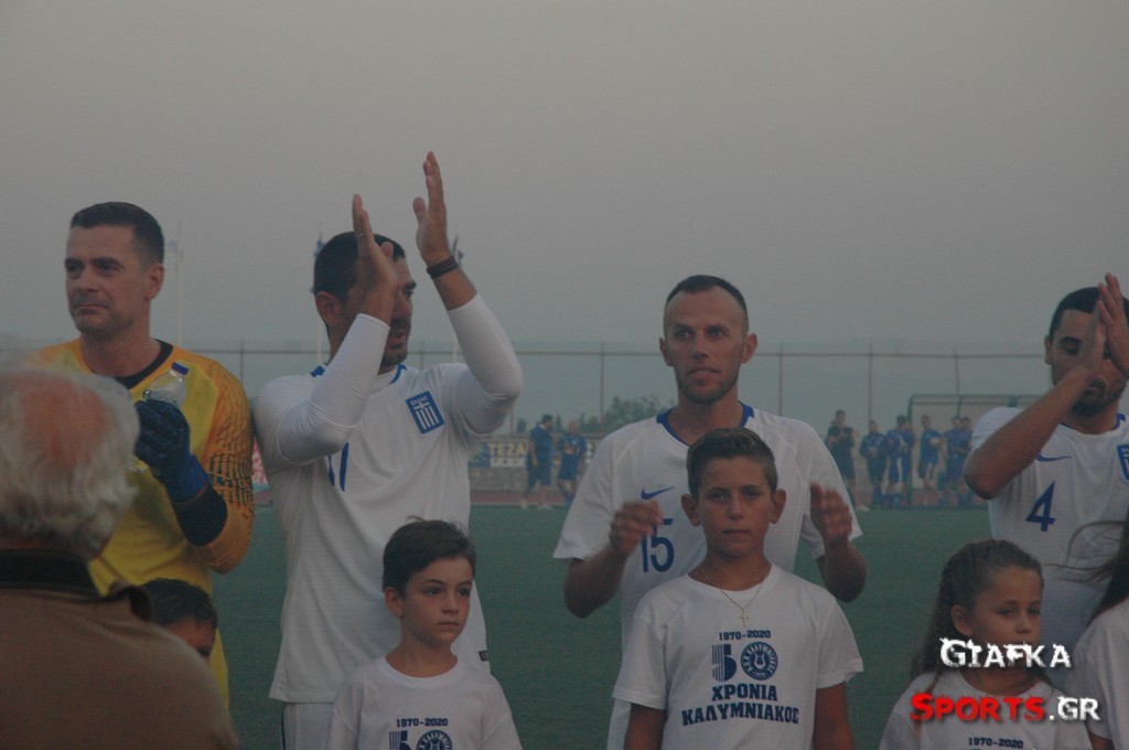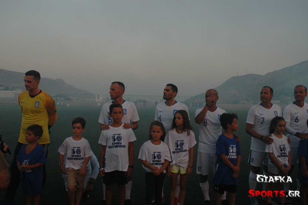 Παλαίμαχοι Καλυμνιακού: Λελέκης, Βρεττός Γ., Ζεμπιλάς, Μαχίνης, Χαλίκος, Βαβλάς Α., Βαβλάς Θ., Ψαράς, Μουχούρτης Σισώης, Κασσάρας, Λιάς, Χουρδάς, Καλικαντζαρος, Πουλλάς, Ντόβελλος.