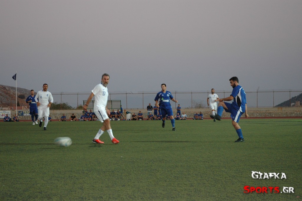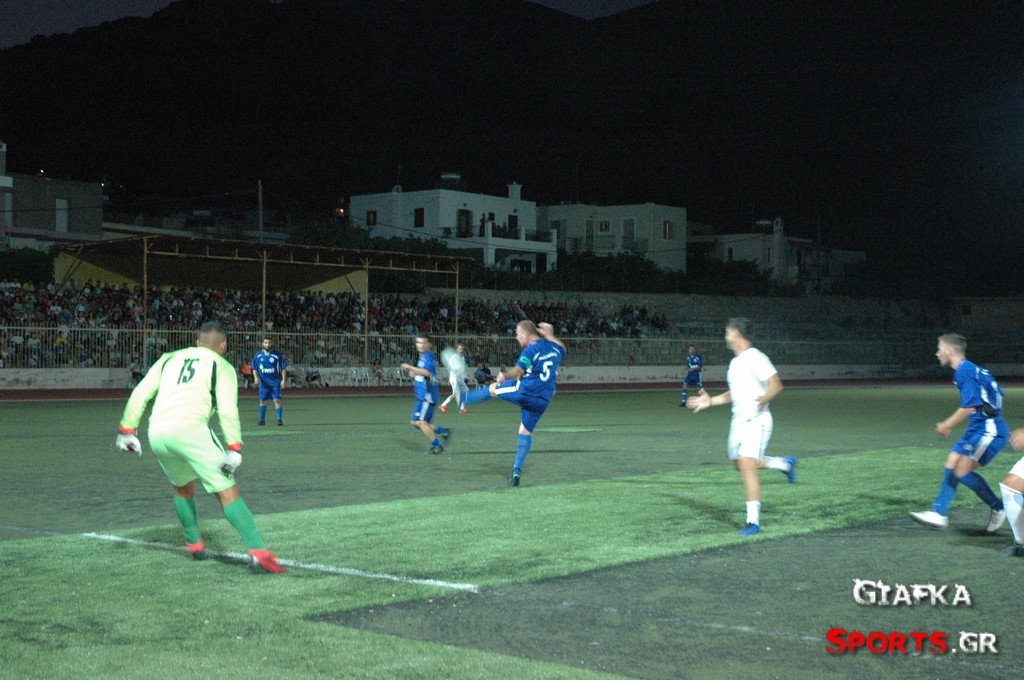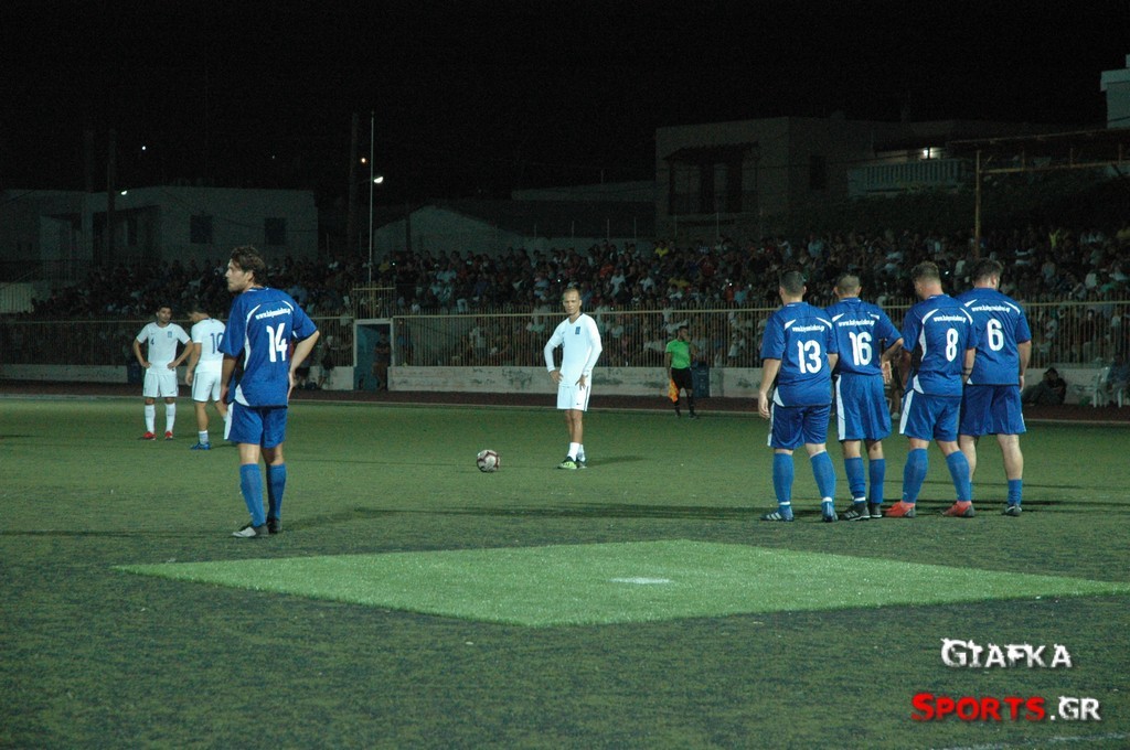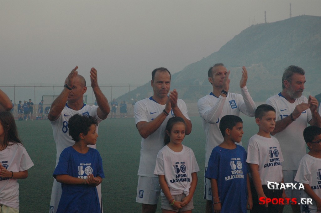 Στο πρώτα 60λεπτά ο κόσμος είχε την ευκαιρία να δει την πρώτη ομάδα του Καλυμνιακού απέναντι στους αστέρες της Εθνικής ενώ στην συνέχεια αγωνίστηκαν παλαίμαχου αθλητές του συλλόγου που μεσουρανούσαν τις προηγούμενες δεκαετίες.
