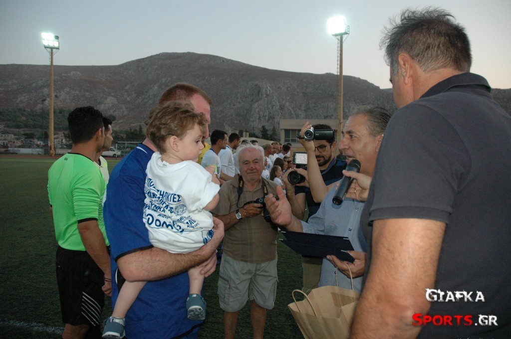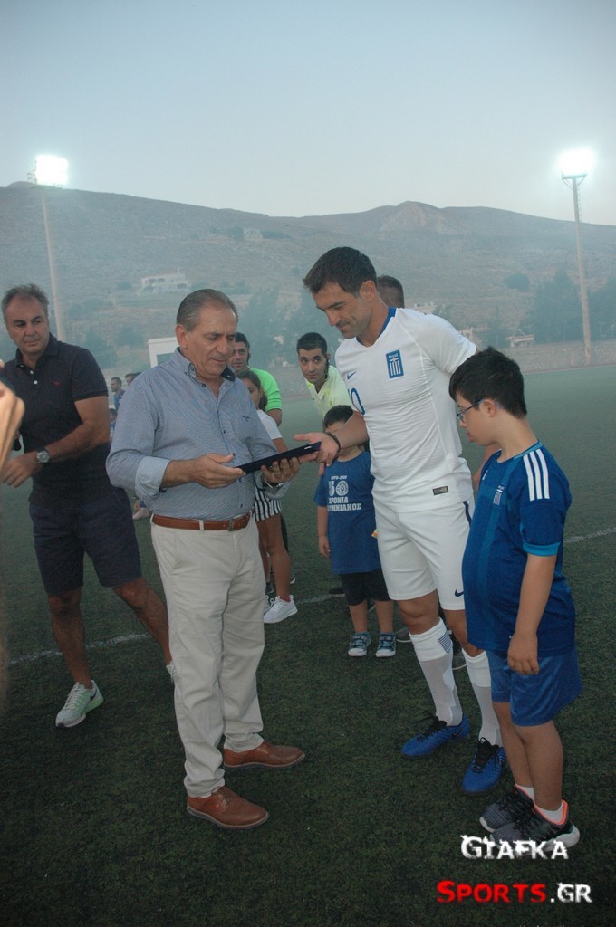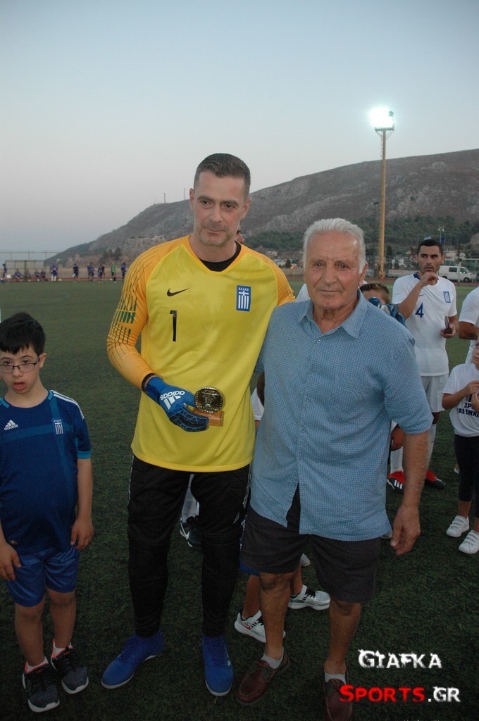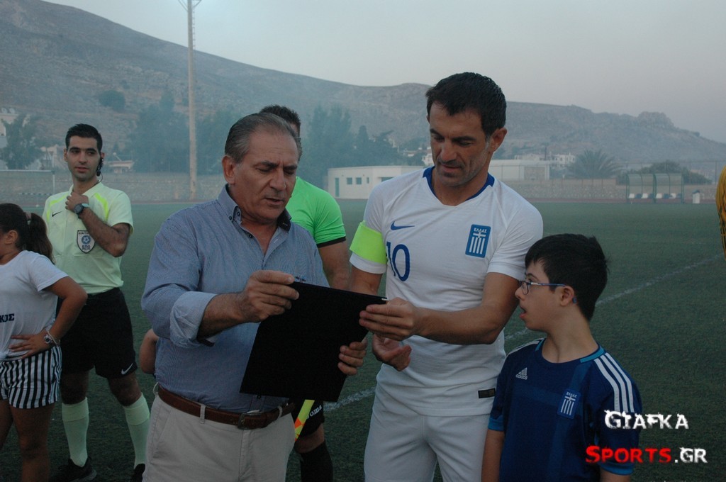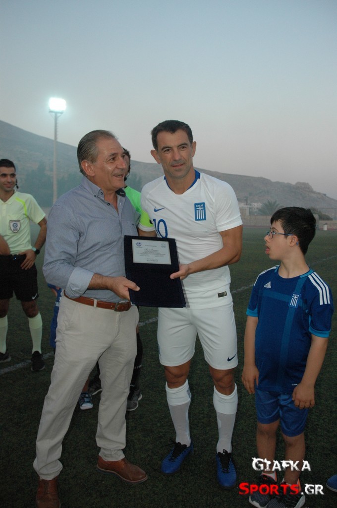 Στην συνέχεια ο πρόεδρος του συλλόγου Θανάσης Μαργαρίτης αφού ευχαρίστησε τον κόσμο αλλά και όσους βοήθησαν για να πραγματοποιηθεί αυτό το ματς, και έδωσε αναμνηστικές πλακέτες σε όλους τους παίκτες της Εθνικής.