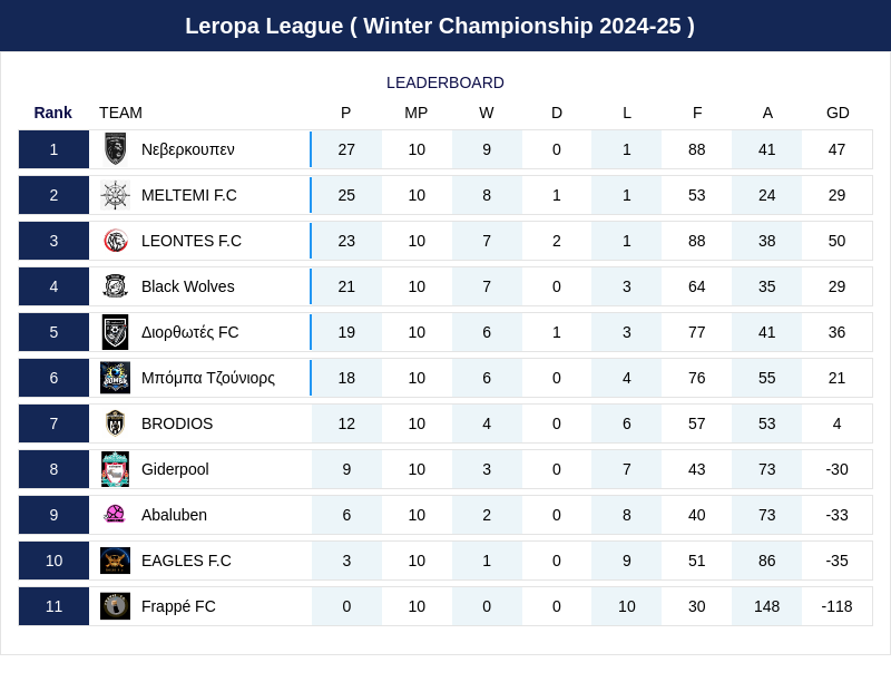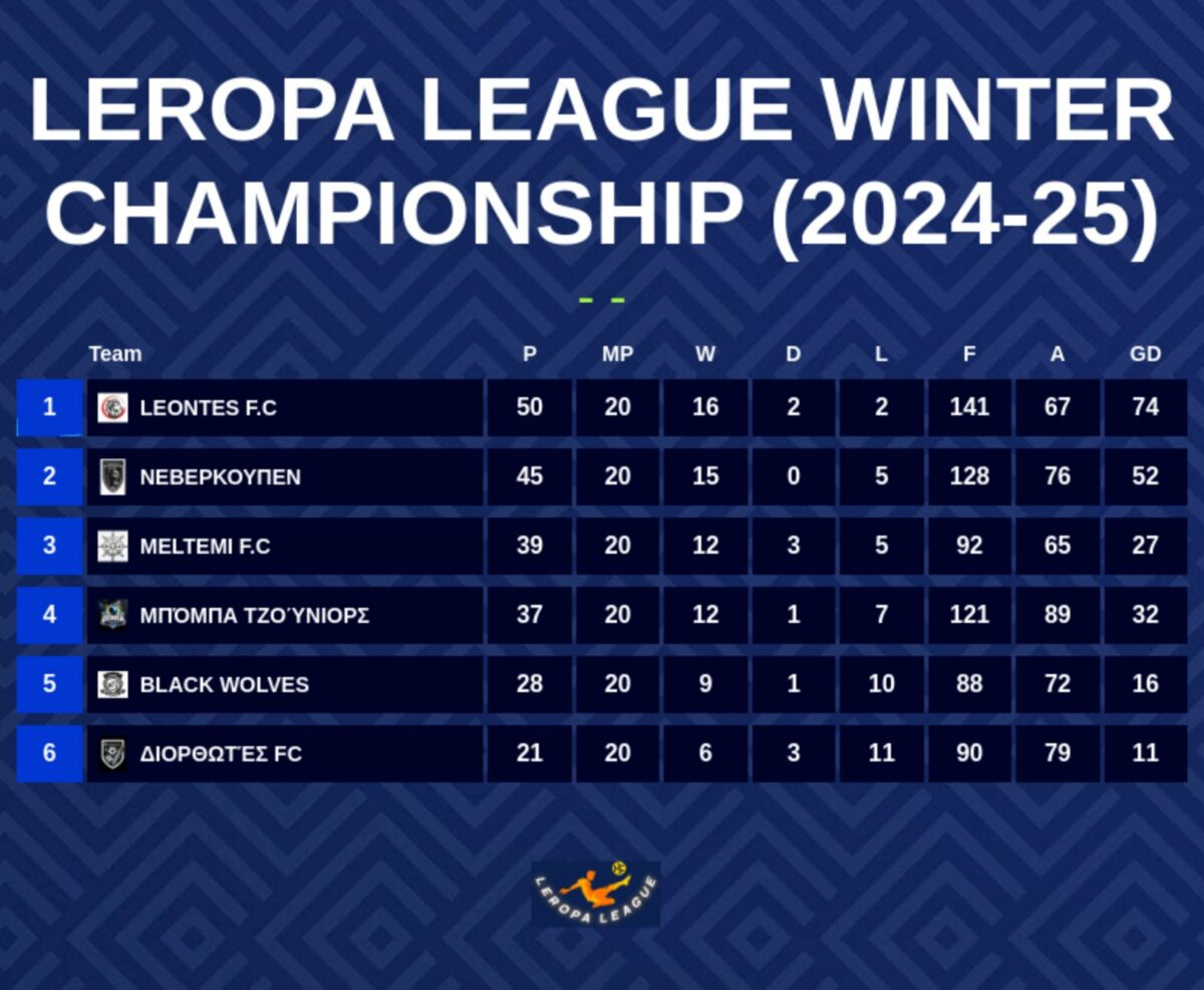 Το πρώτο χειμερινό πρωτάθλημα 5X5 στο νησί της Λέρου ολοκληρώθηκε με την απονομή του τροπαίου και των μεταλλίων στους πρωταθλήτες Leontes F.C μια ομάδα που αποτελείται με παιδιά που βρίσκονται στο λιμενικό σώμα.
