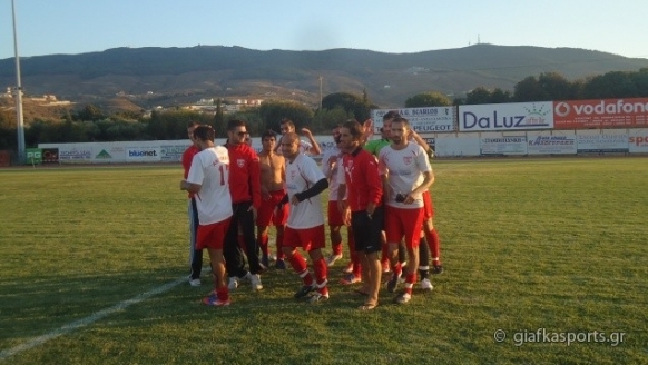 26′ ΓΚΟΛ!! Εκτέλεση φάουλ του Αγγελόπουλου, ο Ξύππας πήρε τη κεφαλιά μέσα στη μικρή περιοχή και έστειλε τη μπάλα στα δίχτυα του Μιαούδη ανοίγοντας έτσι το σκορ για την ομάδα του.