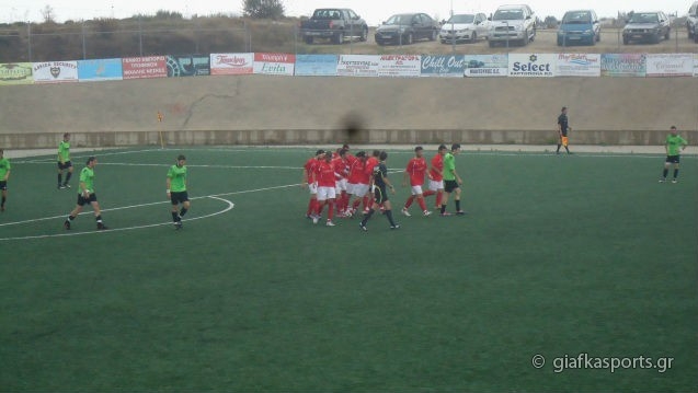 Οι γηπεδούχοι μπήκαν δυναμικά απ’ το πρώτο μέρος και αφού είχαν δοκάρι μόλις στο 1ο λεπτό με τον Ατσαλάκη, στο 3ο προηγήθηκαν όταν ο πολύ καλός σήμερα Μανώλης Οικονόμου, έκανε την σέντρα απ’ τα δεξιά, ο Κοσμάς απέκρουσε ασταθώς και ο Γαβριήλ Συνεσίου από κοντά έκανε το 1-0.