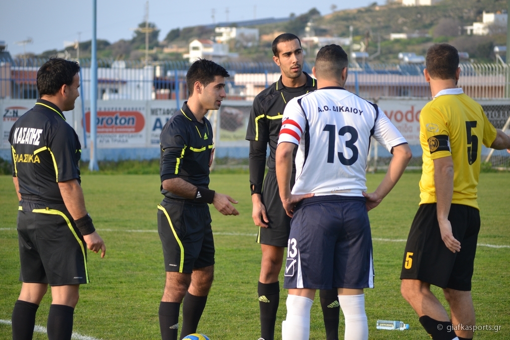 Α.Ο Δικαίου: Γιακούμαρος , Γιαννικουρής , Κεφαλιανός Ι. , Θεοδώρου , Μακρής (34′ λ. τ . Σαμαράς ) , Κουρζής , Φυτάς , Οικονόμου (79′ Τριμμάτης) , Μποϊλής (84′ Καραγιάννης) , Χατζησουλεϊμάν , Μουνούχος .