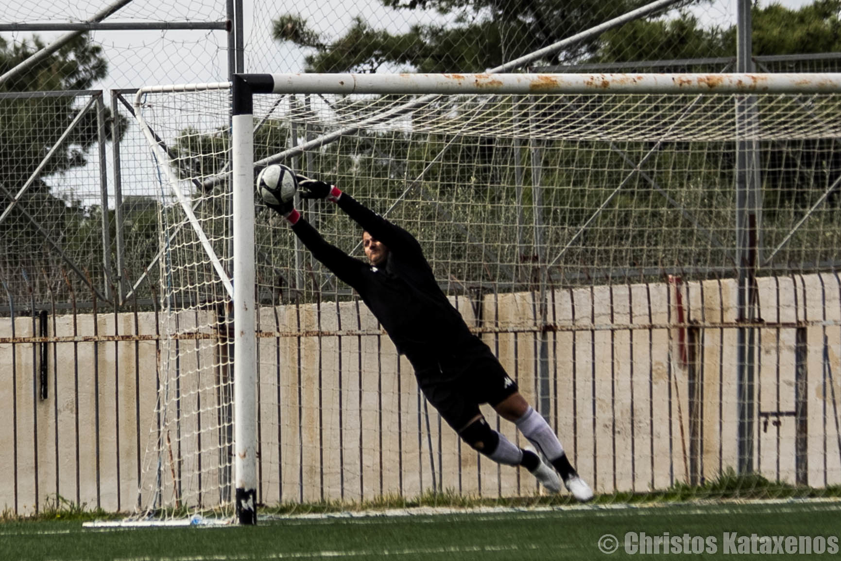 25′ O Παπαστάμος βρέθηκε στην περιοχή, έκανε το σουτ από πλάγια θέση με τον Μιαούδη να μπλοκάρει στην αριστερή του γωνία.