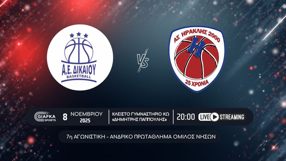 Live Streaming: Α.Ε Δικαίου – Ηρακλής 2000 | 7η αγωνιστική Όμιλος νήσων