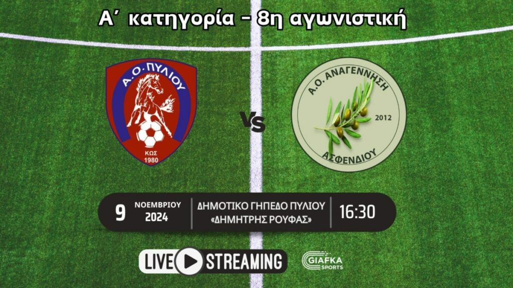Live Streaming: Α.Ο Πυλίου – Αναγέννηση Ασφενδιού