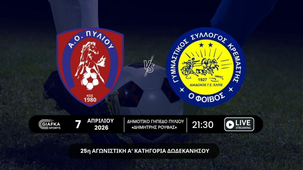 • Live Streaming: Α.Ο Πυλίου – Φοίβος Κρεμαστής | 25η αγωνιστική Α’ κατηγορία Δωδεκανήσου