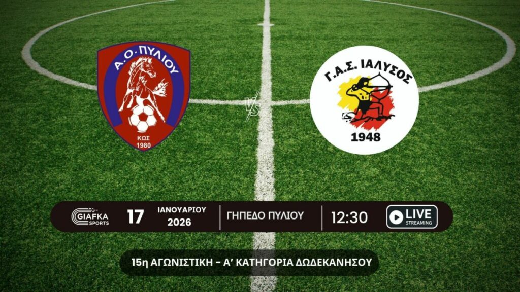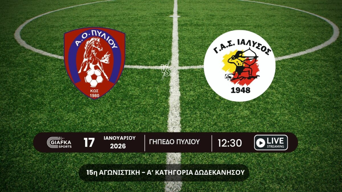 Για την 15η αγωνιστική της Α’ κατηγορίας ο Α.Ο Πυλίου υποδέχεται το Σάββατο στις 12:30 τον Ιάλυσο στο Δημοτικό γήπεδο Πυλίου «Δημήτρης Ρούφας». Παρακολουθήστε το ματς σε Live Streaming απ’ το giafkasports.gr