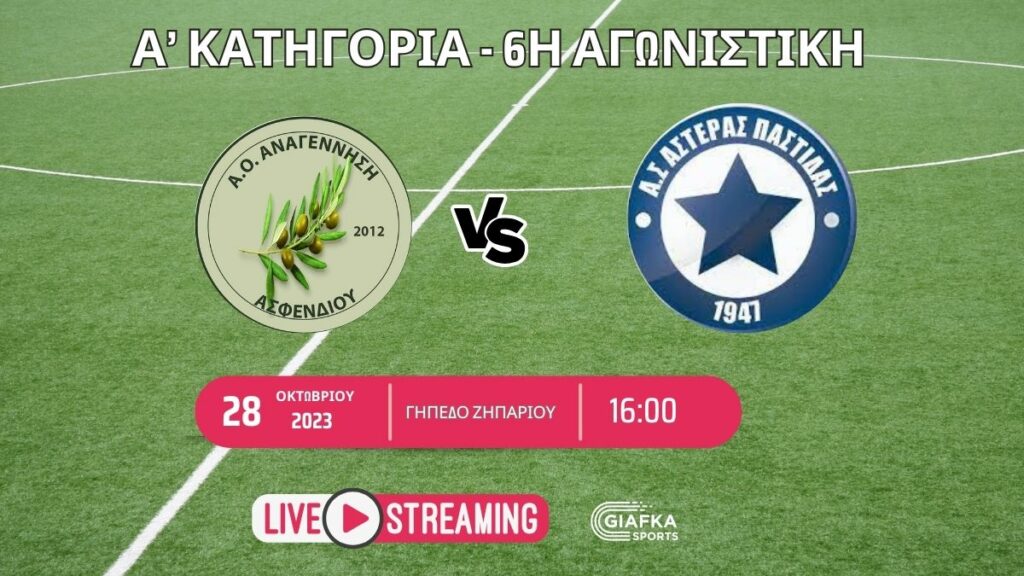 Live Streaming: Αναγέννηση Ασφενδιού – Αστέρας Παστίδας | 6η αγωνιστική Α’ κατηγορία