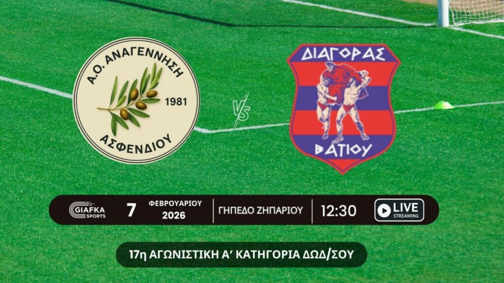 Live Streaming: Αναγέννηση Ασφενδιού – Διαγόρας Βατίου | 17η αγωνιστική Α’ κατηγορία