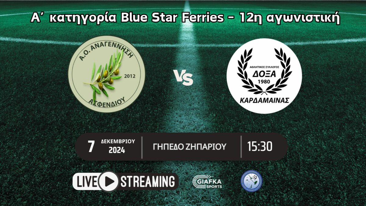 Για την 12η αγωνιστική της Α’ κατηγορίας η Αναγέννηση Ασφενδιού υποδέχεται στο γήπεδο Ζηπαρίου την Δόξα Καρδάμαινας. Παρακολουθήστε το ματς σε Live Streaming το Σάββατο 7.12 στις 15:30
