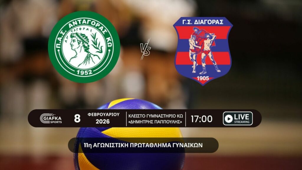 Για την 11η αγωνιστική του πρωταθλήματος γυναικών ο Ανταγόρας υποδέχεται τον Διαγόρα την Κυριακή στις 17:00 στο Κλειστό γυμναστήριο Κω «Δημήτρης Παππούλης». Παρακολουθήστε το ματς σε Live Streaming απ’ το giafkasports.gr