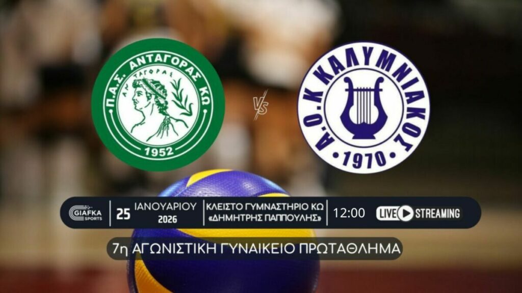 Για την 7η αγωνιστική του γυναικείου πρωταθλήματος ο Ανταγόρας υποδέχεται τον Καλυμνιακό στο Κλειστό γυμναστήριο Κω «Δημήτρης Παππούλης». Παρακολουθήστε το ματε σε Live Streaming απ’ το giafkasports.gr