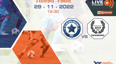 Live Streaming: Δόξα Καρδάμαινας – Αναγέννηση Ασφενδιού | 11η αγωνιστική Α’ κατηγορία