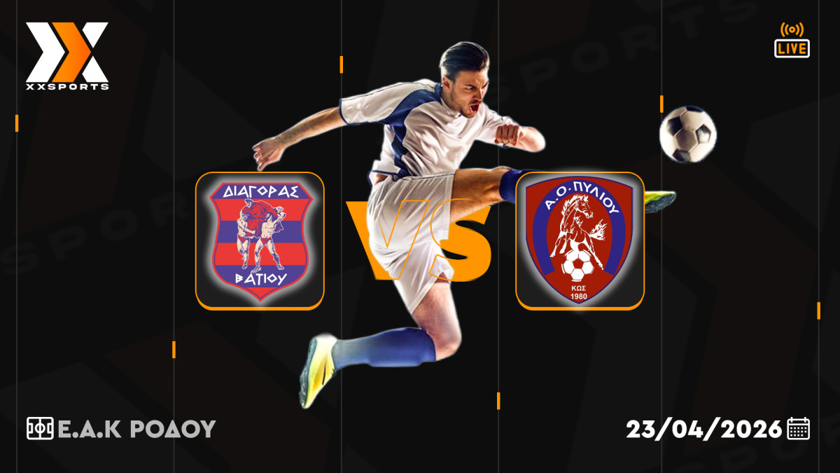 Παρακολουθήστε ζωντανά την αναμέτρηση για την 28η αγωνιστική της Α Κατηγορίας Blue Star Ferries μεταξύ του Διαγόρας Βατίου και του Α.Ο Πυλίου από το Ε.Α.Κ Ρόδου.