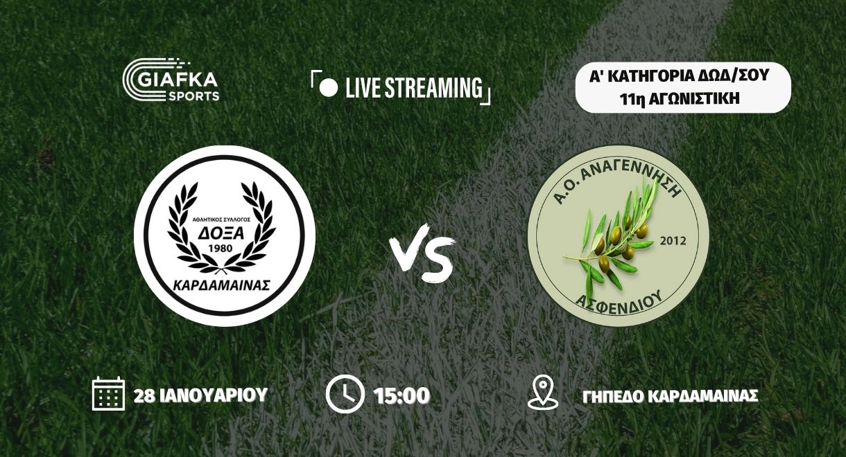 Live Streaming: Δόξα Καρδάμαινας – Αναγέννηση Ασφενδιού