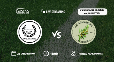Παρακολουθήστε στις 15:00 (28/1) σε Live Streaming απ’ το giafkasports.gr το τοπικό ντέρμπι ανάμεσα σε Δόξα Καρδάμαινας και Αναγέννηση Ασφενδιού για την 11η αγωνιστική.