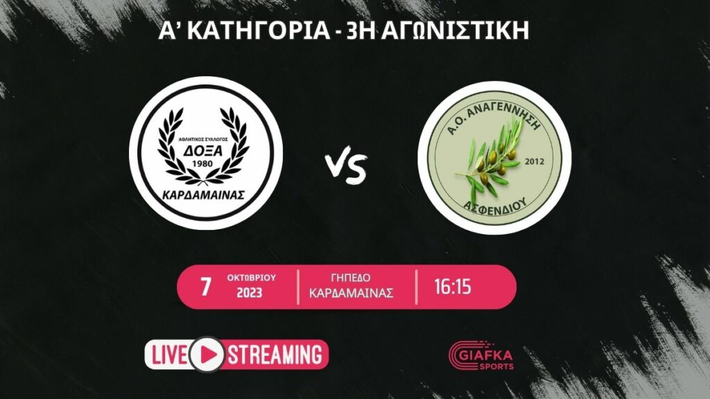 Live Streaming: Δόξα Καρδάμαινας – Αναγέννηση Ασφενδιού