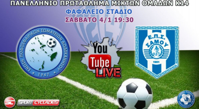 Παρακολουθήστε σε ζωντανή μετάδοση σε παραγωγή του sportcyclades.gr  από το Φαφάλειο γήπεδο της Χίου τον αγώνα του ομίλου νήσων για το Πανελλήνιο Πρωτάθλημα Μικτών Ομάδων Κ14 μεταξύ της ΕΠΣ Δωδεκανήσου και της ΕΠΣ Σάμου.