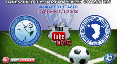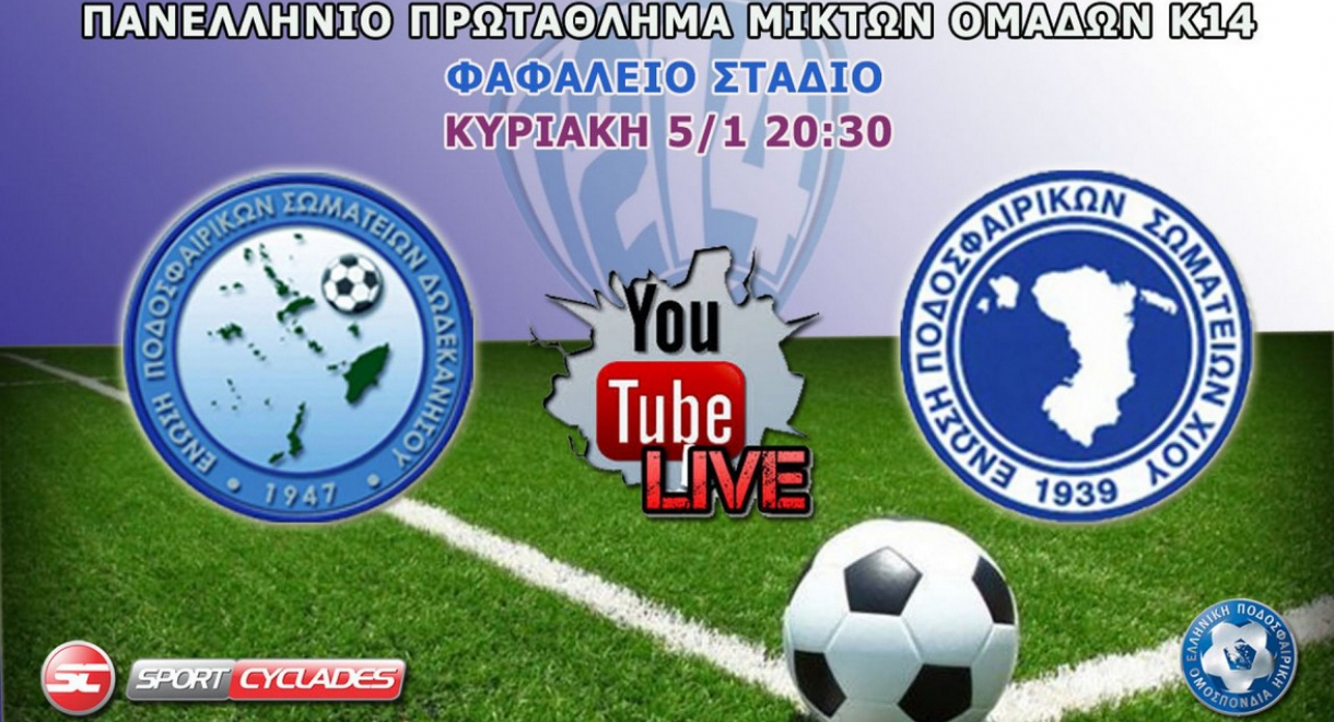 Παρακολουθήστε σε ζωντανή μετάδοση σε παραγωγή του sportcyclades.gr από το Φαφάλιειο γήπεδο της  Χίου τον αγώνα του ομίλου νήσων για το Πανελλήνιο Πρωτάθλημα Μικτών Ομάδων Κ14 μεταξύ της ΕΠΣ Δωδεκανήσου  και της ΕΠΣ Χίου. Σέντρα στις 20:30