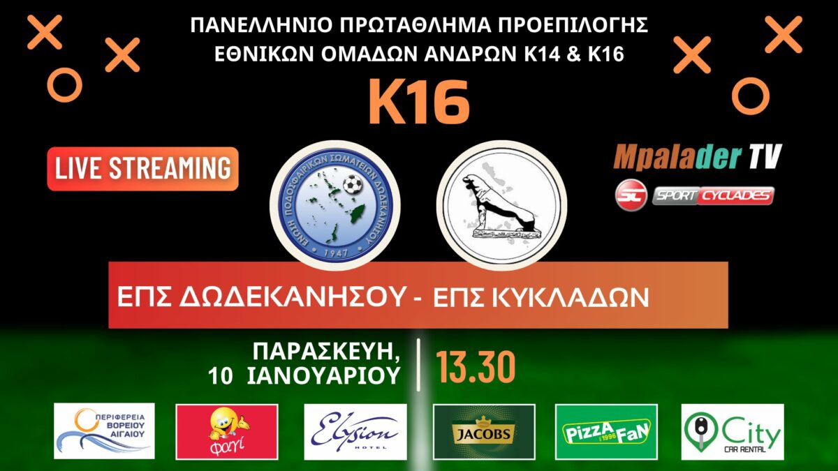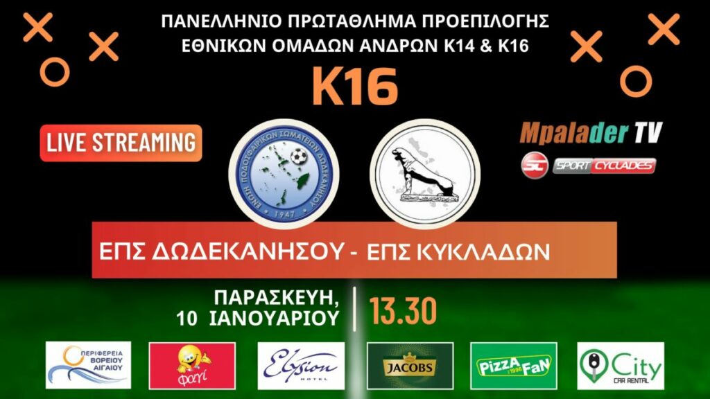 Live Streaming: ΕΠΣ Δωδεκανήσου – ΕΠΣ Κυκλάδων Κ-16 (13:30)