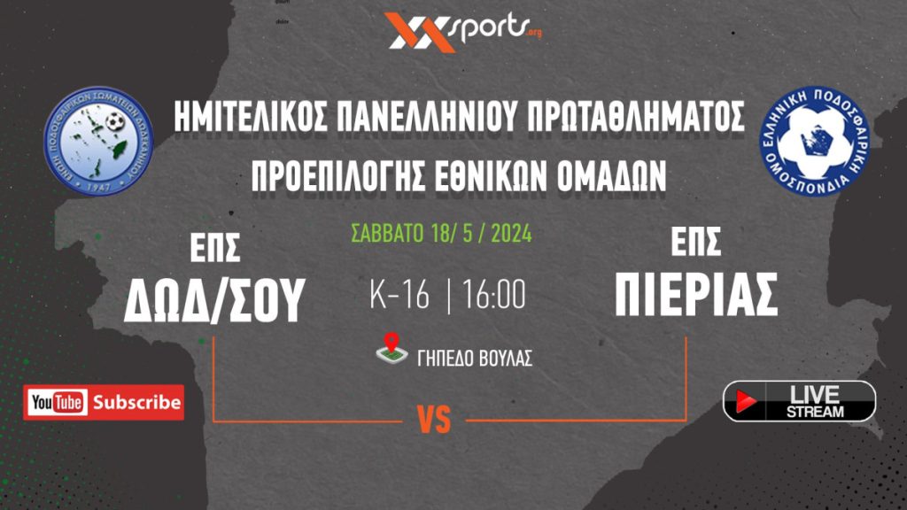 Home » Live Streaming: ΕΠΣ Δωδεκανήσου – ΕΠΣ Πιερίας