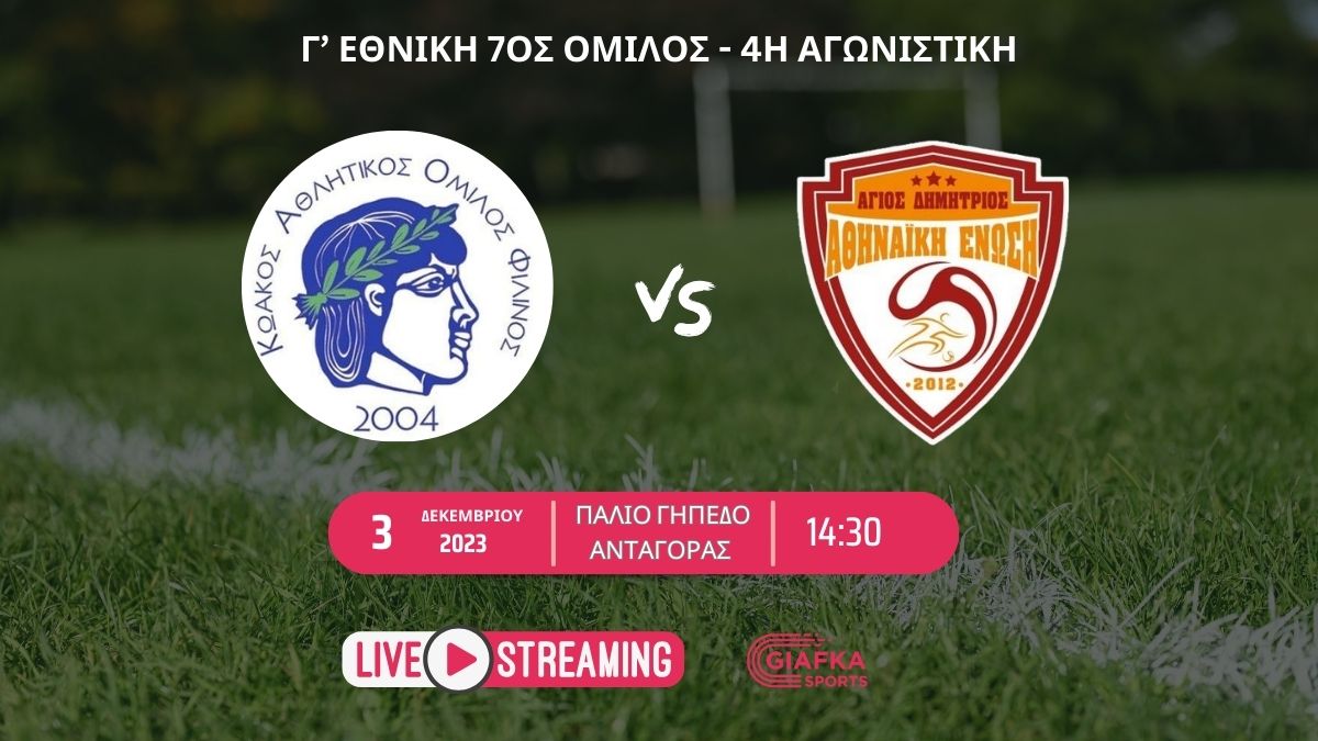 Live Streaming: Φιλίνος – Αθηναϊκή Ένωση Αγίου Δημητρίου