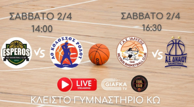 Στις 2 και 3 Απριλίου ο Έσπερος με την στήριξη του Δήμου Κω διοργανώνει το Final-4 παίδων Δωδεκανήσου στο Κλειστό γυμναστήριο Κω. Υπό την αιγίδα της Τ.Ε.Ε.Ο.Κ Δωδεκανήσου.