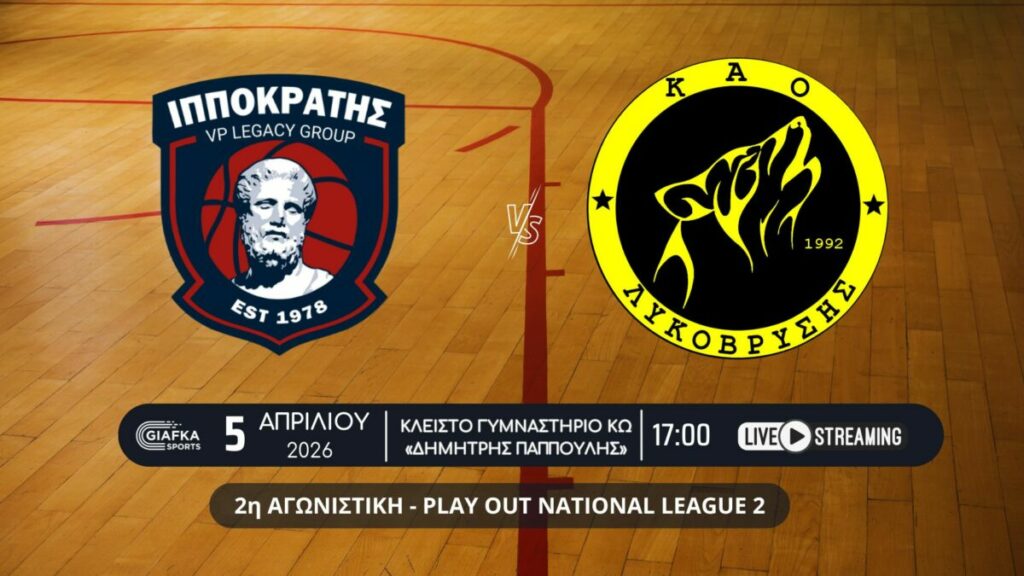 Για την 2η αγωνιστική των πλέι άουτ της National League ο Ιπποκράτης υποδέχεται την Κυριακή στις 17:00 την Λυκόβρυση με την σειρά να είναι στο 2-1. Παρακολουθήστε το ματς σε Live Streaming απ’ το giafkasports.gr